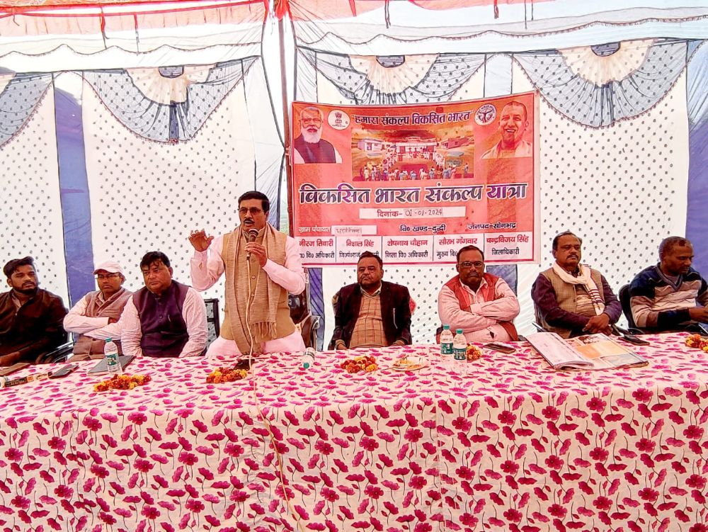 विंढमगंज, सोनभद्र (सुमन गुप्ता)। थाना क्षेत्र के धरतीडोलवा में विकसित भारत संकल्प यात्रा कार्यक्रम के तहत पंचायत भवन परिसर में आयोजन किया गया। आयोजन इस मौके पर एल0ई0डी0 वैन के माध्यम से केन्द्र सरकार द्वारा संचालित विभिन्न जनकल्याणकारी योजनाओं की जानकारी उपस्थित जन समुदाय को दी गयी,साथ ही धरतीडोलवा कम्पोजिट विद्यालय के छात्राओं द्वारा सांस्कृतिक कार्यक्रम प्रस्तुत किया साथ। उपस्थित लोगो ने सरहाना की इस मौके पर कार्यक्रम के मुख्य अतिथि राम नरेश पासवान पुर्व अनु०जाति वह अनु०जन जाति उ० प्र० आयोग उपाध्यक्ष ने उपस्थित लोगों को संबोधित करते हुए कहा कि विकसित भारत संकल्प यात्रा का उद्देश्य है कि गांव व शहर क्षेत्र में निवास करने वाले हर पात्र व्यक्तियों को सरकार के द्वारा संचालित योजनाओं से जोड़ा जाये, जो व्यक्ति योजनाओं से लाभान्वित हुए हैं, उनके जीवन स्तर में किस तरह का सुधार हुआ, जीवन स्तर में सुधार लाने हेतु अनेक जन कल्याणकारी योजनाओं से जन जन को लाभान्वित करने हेतु यह योजना बनायी गयी है, इस विकसित भारत संकल्प यात्रा के माध्यम से गांवों में पात्र व्यक्तियों को क्या लाभ हुआ है। इस दौरान विभिन्न विभागों द्वारा केन्द्र व प्रदेश सरकार द्वारा संचालित योजना से सम्बन्धित लगाये गये विभिन्न स्टालों को जनमानस॒ ने देखा और विभाग द्वारा चलायी जा रही योजनाओं के सम्बन्ध में जानकारी भी प्राप्त की।