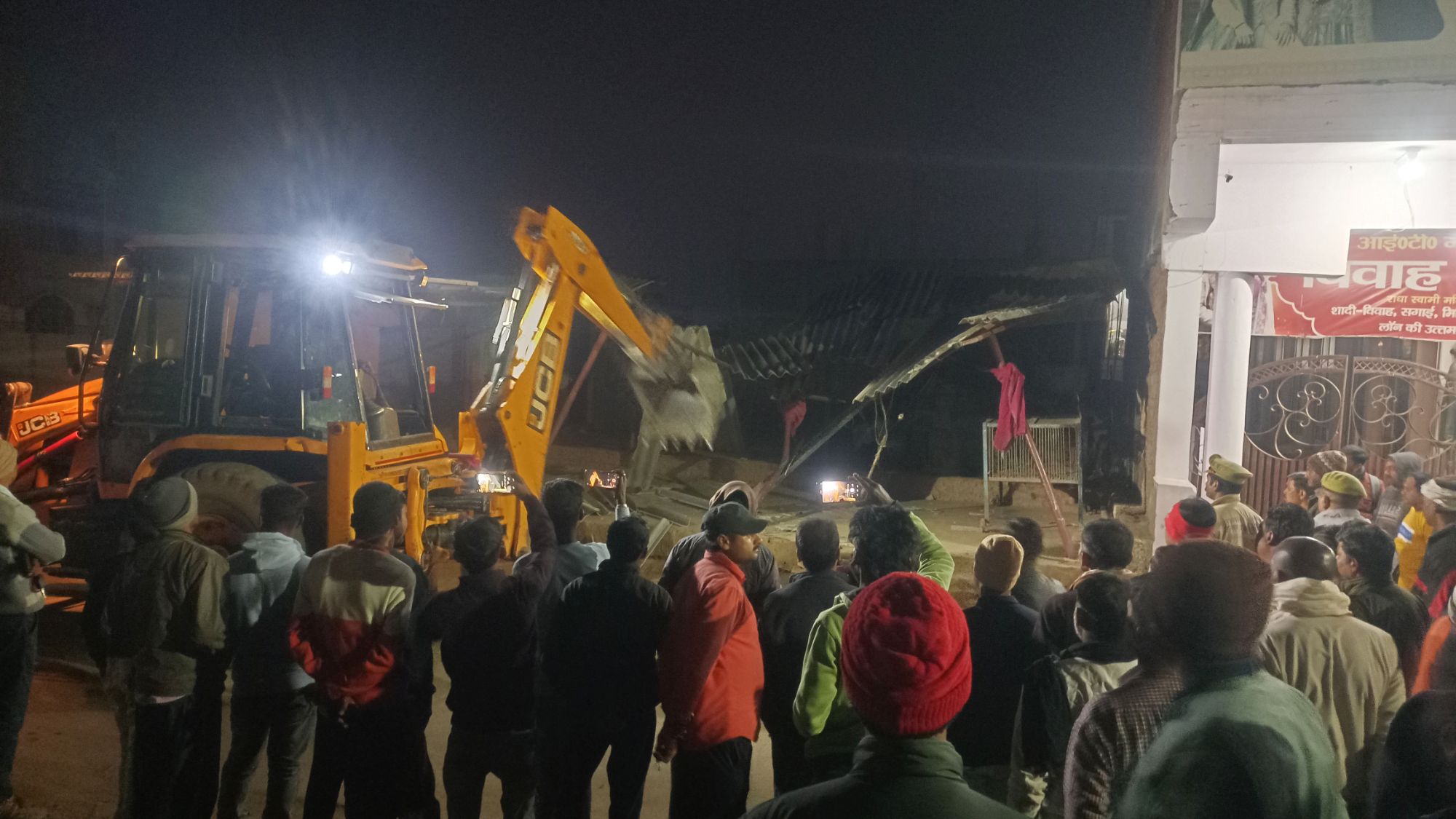 दुद्धी। स्थानीय कस्बे में वृहस्पतिवार को देर शाम करीब साढ़े छः बजे अतिक्रमण कर अवैध मिट दुकानों पर बुलडोजर चला। अतिक्रमण मुक्त कराने को लेकर मिट दुकानदारों को समय दिया गया था। लेकिन लोगों ने दुकानें नहीं हटाई। वृहस्पतिवार को नगर पंचायत ने अतिक्रमण किये दुकानों पर बुलडोजर चलाकर जमीन को मुक्त करा दिया।