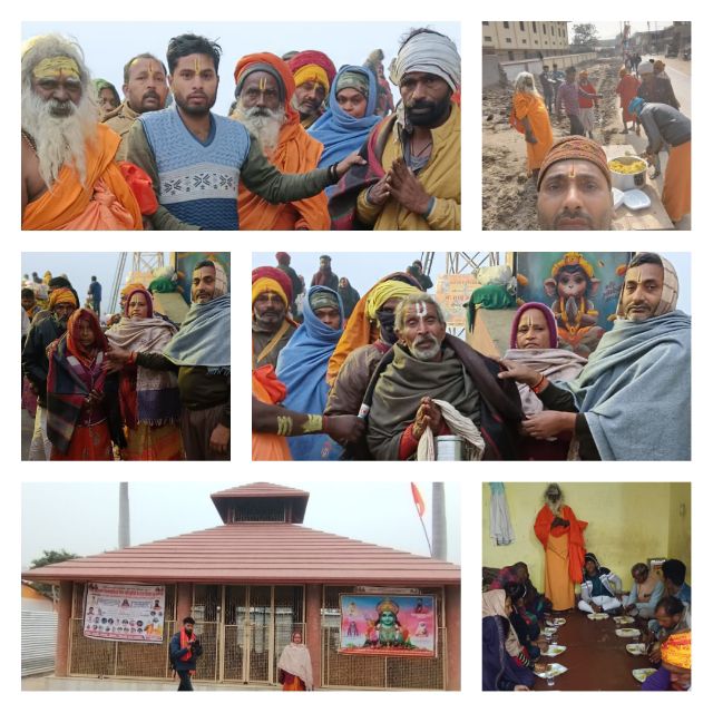 बता दें कि सोनभद्र के भिखारी उर्फ जंगली बाबा के द्वारा अयोध्या धाम स्थित मणिराम छावनी के धर्म मंडप में 17 जनवरी से 25 जनवरी तक विराट रूद्र महायज्ञ एवं 11 निर्धन कन्याओं की शादी का कार्यक्रम आयोजित किया गया है। मकर संक्रांति पर्व पर भिखारी बाबा के साथ सोनभद्र से आए आचार्य राजेश कुमार पाठक, शिव शक्ति महिला मंडल की संरक्षिका सुशीला पाठक, राम खेलावन, श्याम बिहारी, प्रहलाद, रामवृक्ष, हरिचंद, प्रभु नारायण, भुनेश्वर, राजेंद्र, शेरू अभय, अयोध्या, रामप्यारे और योगेश ने सरजू नदी में स्नान किया और नदी तट पर ही पूजन अर्चन किया। शिव शक्ति महिला मंडल की संरक्षिका सुशीला पाठक ने सरजू नदी तट पर जरूरतमंद लोगों में कंबल का वितरण किया। जाड़े में कंबल पाकर जरूरतमंदों के चेहरे पर मुस्कान दिखी। वहीं भिखारी भोले सेवा ट्रस्ट की ओर से यमुना बिहारी कुंज आश्रम पर भूखों को खिचड़ी खिलाई गई। इसके अलावा मंगलवार को भंडारा चलाया गया, जिसमें बहुत से लोगों ने प्रसाद ग्रहण किया। इस मौके पर भिखारी बाबा, आचार्य राजेश कुमार पाठक, आचार्य मनीष तिवारी आदि लोग मौजूद रहे।