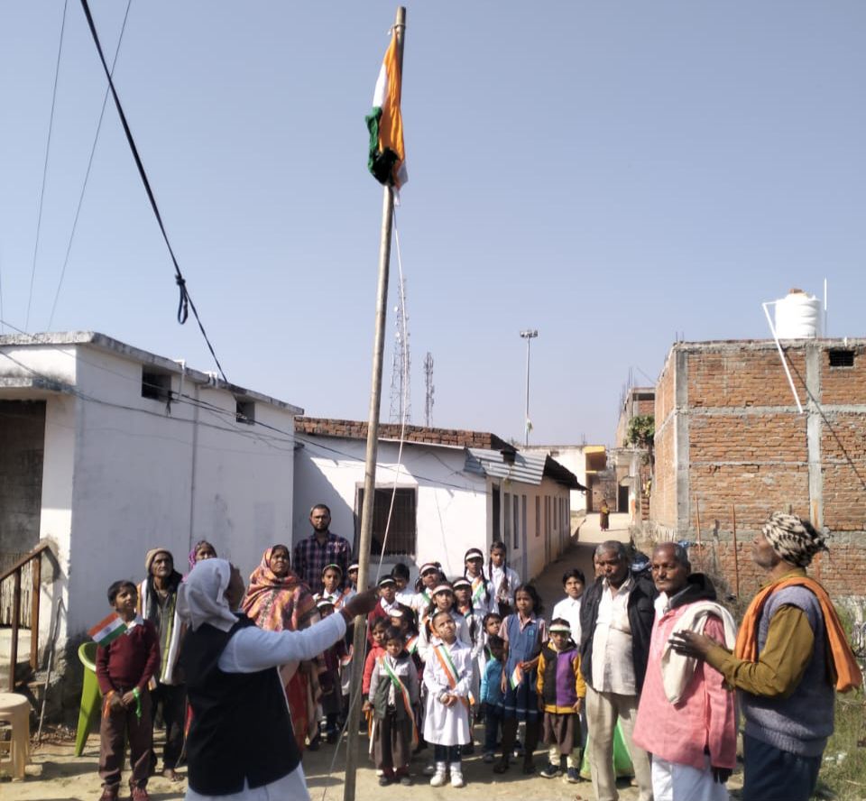 मां गायत्री पूर्व माध्यमिक विद्यालय व परख वृद्धाश्रम में फहराया गया तिरंगा