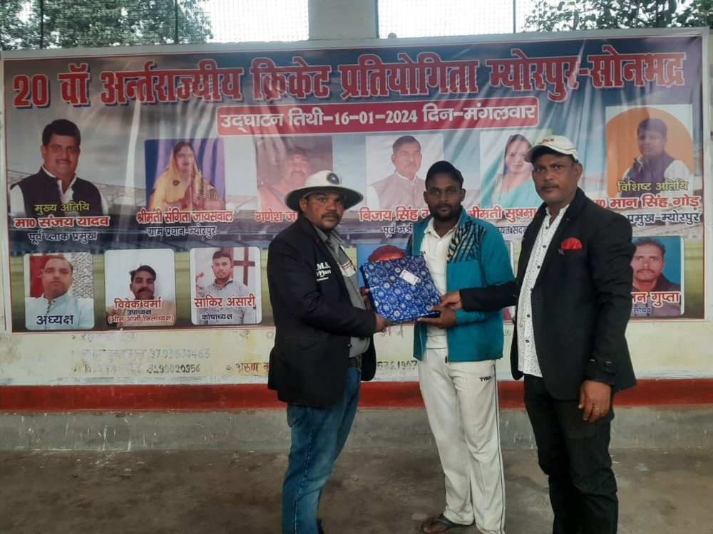 म्योरपुर खेल मैदान पर चल रहे 20वा अन्तर्राजिय ड्यूज क्रिकेट प्रोयोगिता का मैच बिना व गाजीपुर के बीच खेला गया टॉस जीत कर बिना की टीम ने गाजीपुर को पहले बल्लेबाजी करने का न्योता को दिया गाजीपुर के बल्लेबाज ने 18.1 ओवरों में सभी विकेट खो कर 178 रन बना बिना को 179 रनों के लक्ष्य दिया गाजीपुर की ओर से सलामी बल्लेबाज श्रीजन ने 31 बाल पर 8 चौका व 3 छक्के की मद्दत से 60 रन बनाया व विश्वजीत ने 21 बाल पर 36 रनों का योगदान दिया बिना के बॉलर बिल्लो तिवारी 50 रन खर्च कर शानदार 3 विकेट लिया रनों के पीछा करने उतरी बिना की टीम 141 पर आल आउट हों गयी बिना की ओर से अमित पांडेय ने 31 रनों की बदौलत 141 ही बना सकी गाजीपुर के बॉलर विश्वजीत ने 4 ओवरों में 19 रन देकर शानदार 4 विकेट लिये हरफन मौला प्रदर्शन के लिये विश्वजीत को मैन ऑफ द मैच का पुरुस्कार दिया गया अंपायरिंग की भूमिका पंकज सिंह,व अजय अग्रहरि ने निभाई कमेंट्री की भूमिका विवेक सही व सुहेब अंसारी ने निभाई इस दौरान कमेटी अध्यक्ष रंजीत जायसवाल,कोषाध्यक्ष शाकिर अंसारी,उपाध्यक्ष विवेक वर्मा, सचिव राजन गुप्ता आदि मौजूद रहे
