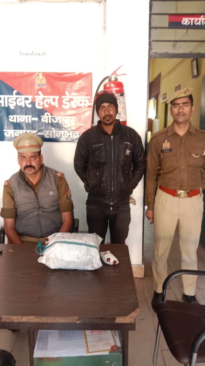 बीजपुर(रामजियावन गुप्ता) पुलिस अधीक्षक सोनभद्र के निर्देश पर अबैध मादक पदार्थो की बिक्री में संलिप्त अपराधियो की धरपकड़ अभियान के तहत पुलिस ने सिरसोती बार्डर अधौरा मोड़ बस्ती शनिवार को एक ब्यक्ति के पास से डेढ़ किलो नाजायज गाँजा संग गिरफ्तार कर विधिक कार्रवाई करते हुए चालान कर दिया।प्रभारी निरीक्षक पंकज पांडेय द्वारा गठित पुलिस टीम क्षेत्र में भ्रमण सील थी कि इसी दौरान मुखबिर से मिली सूचना पर टीम ने बताए हुए स्थान पर पहुच कर डोडहर निवासी संदिग्ध ब्यक्ति की तलाशी ली तो उसके पास एक किलो पाँच सौ ग्राम नाजायज गाँजा बरामद हुआ।पूछताछ में उसने अपना नाम अशर्फी लाल पुत्र रामप्रसाद बताया पुलिस ने गिरफ्तार आरोपी को विधिक कार्रवाई के बाद सम्बन्धित धारा में न्यायालय के लिए चालान कर दिया। पुलिस टीम में उपनिरीक्षक विनीत सिंह,का०जितेन्द्र कुमार पासवान,मंगल प्रजापति शामिल थे।