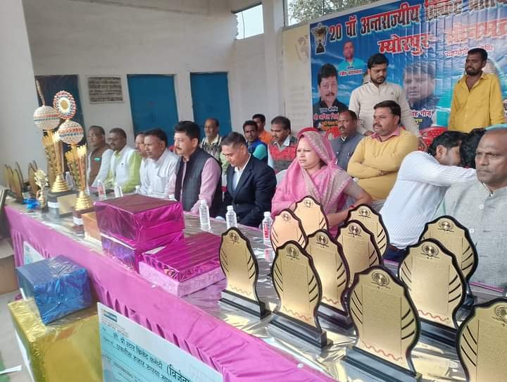 म्योरपुर।स्थानीय खेल मैदान में चल रही अंतरराज्जीय क्रिकेट प्रतियोगिता का फाइनल मुकाबला गाजीपुर ने गया को 56 रनों से हराकर अपने नाम किया।टॉस जीतकर गया ने पहले क्षेत्ररक्षण का फैसला किया।इस दौरान बल्लेबाजी करते हुए गाजीपुर की टीम ने 20 ओवरों में 7 विकेट गंवाकर 210 रन बनाए।गाजीपुर की ओर से विश्वजीत ने 56 गेंद पर 122 रन बनाए, सचिन ने 23 गेंद पर 33 रन बनाकर 210 रनों का लक्ष्य दिया।गया की ओर से दयानंद ने 30 रन देकर दो विकेट लिए, जबकि पीके राहुल ने 27 रन देखकर दो विकेट लिए।लक्ष्य का पीछा करने उतरी गया की टीम 16 ओवरों में ही 154 रन बनाकर ऑल आउट हो गई।गया की ओर से आदित्य ने 22 गेंद पर 46