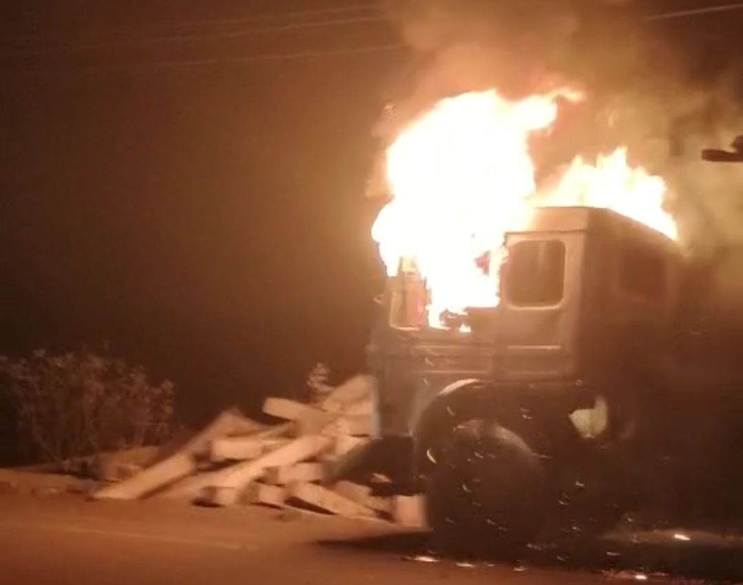 -ट्रक मे संदिग्ध परिस्थियो मे लगा आग चालक की मौत,छोटा सिलेंडर फटने से आग लगने की आशंका