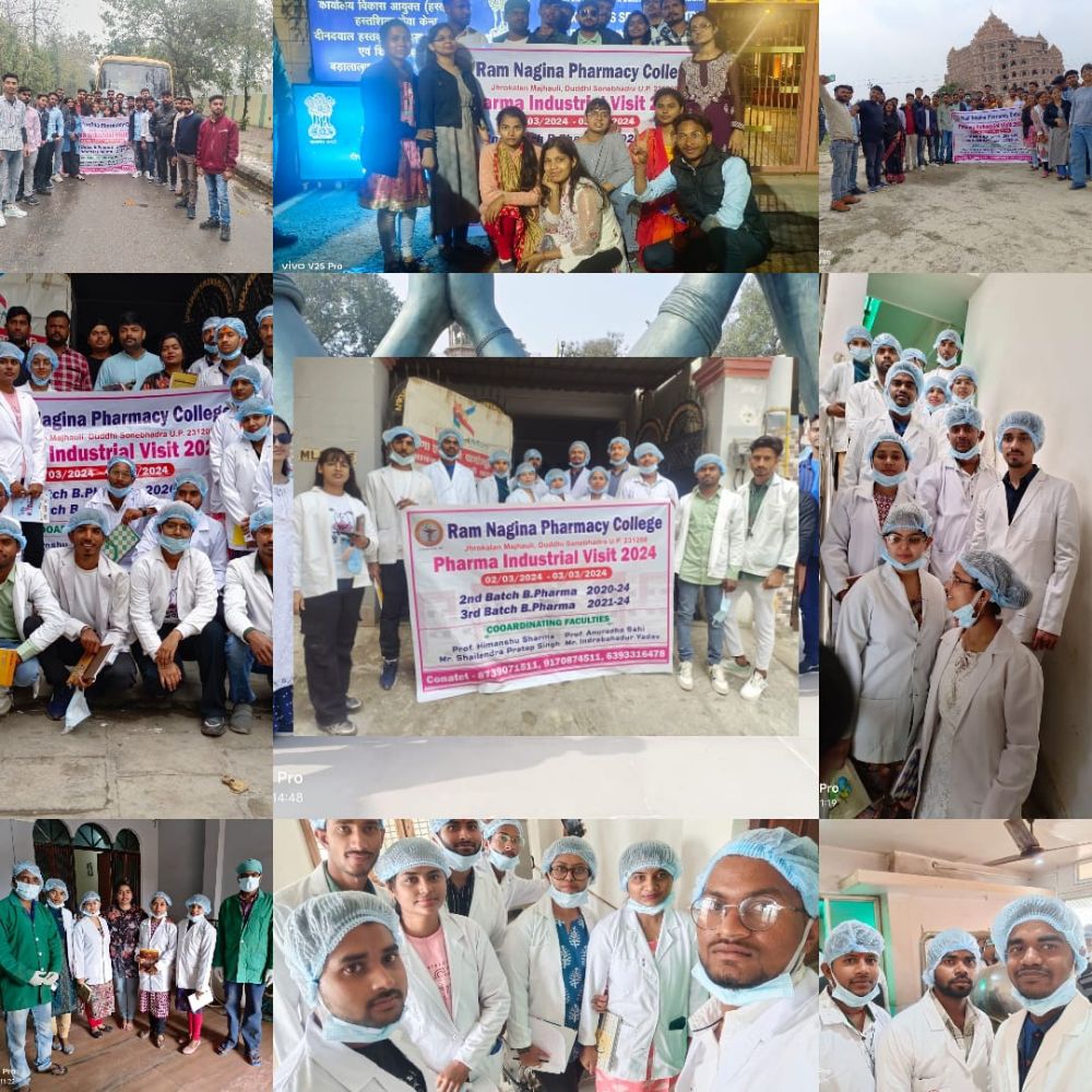 राम नगीना फॉर्मेसी कॉलेज के प्रोफेसर अनुराधा साही, प्रोफेसर हिमांशु शर्मा एवं सहायक प्रोफेसर शैलेंद्र प्रताप सिंह और इंद्र बहादुर यादव ने बनारस क्षेत्र में स्थापित राष्ट्रीय एवं अंतर्राष्ट्रीय स्तर की प्रतिष्ठित दवा निर्माता इकाइयों से संपर्क करते हुए फार्मास्युटिकल उद्योग, कृष्णा मूर्ति फार्मास्यूटिकल लिमिटेड, मैकलियोड्स फार्मास्युटिकल लिमिटेड के भ्रमण हेतु अनुमोदन प्राप्त किया। त्रिदिवसीय औद्योगिक भ्रमण के दौरान उत्पादन प्रबंधन, टेस्टिंग लैबोरेटरी, ड्रग्स मैन्युफेक्चरिंग एंड पेकेजिंग का लाभ उठाते हुए उत्पादन के समय ली जाने वाले सावधानियों एवं मानकों का ज्ञान अर्जित किया। इसके साथ कृष्णा मूर्ति फार्मास्यूटिकल के डायरेक्टर श्री एम बी सिंह द्वारा उ दवा बनाने वाले औद्योगिक प्रतिष्ठानों मे बीफार्म के उपरांत रोजगार के अवसरों हेतु विभिन्न विभागों के लिए आवश्यक प्रशिक्षण एवं योग्यता की जानकारी भी दी गई। छात्रों के सर्वांगीण विकास हेतु शैक्षिक ज्ञान के साथ नमो घाट, सारनाथ, बीएचयू वीटी, स्वर्वेद मन्दिर, राम नगर किला,ट्रेड फैसिलेशन सेंटर भ्रमण के दौरान कैम्पिंग कर , बोटिंग, , स्लाइडिंग आदि का अनुभव अर्जितकिया साथ ही पुरी ट्रिप को कॉलेज परिसर के मैनेजमेंट के पार्ट मिस्टर मनोज कुमार, शशिकांत और समस्त फार्मेसी स्टाफ ने सफल बनाने में पूरा योगदान दिया।