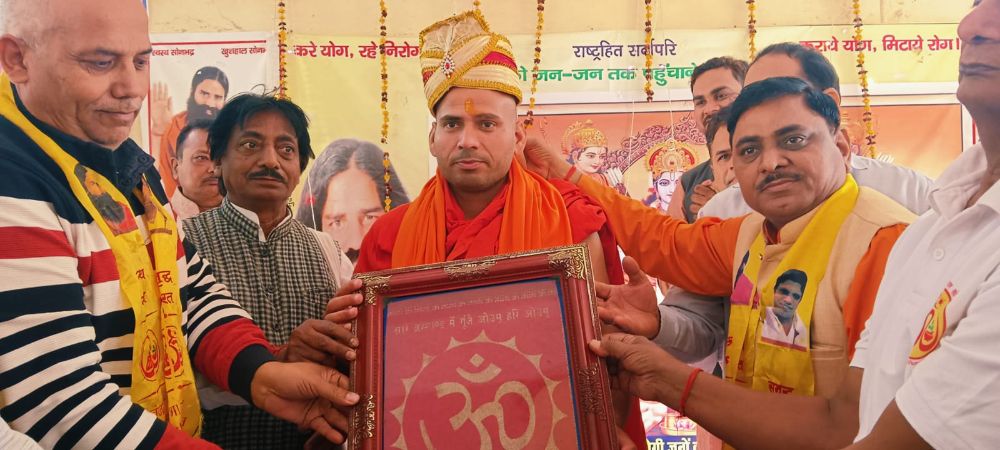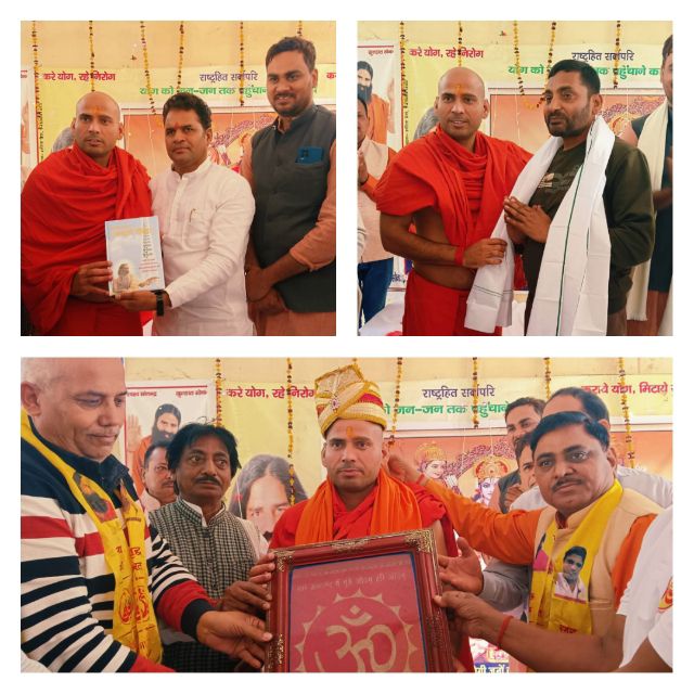 युवा भारत राज्य प्रभारी बृजमोहन , मऊ से चलकर आए युवा योग शिक्षक मारकंडे , कुशल मार्गदर्शक रमेश राम पाठक, ओम प्रकाश यादव की अध्यक्षता में,पतंजलि योग समिति जिला प्रभारी रबि प्रकाश त्रिपाठी, भारत स्वाभिमान जिला महामंत्री सुनील कुमार चौबे के कुशल नेतृत्व में ,भारत स्वाभिमान जिला प्रभारी वीरेंद्र, किसान सेवा समिति जिला प्रभारी अरुण कुमार यादव , युवा भारत जिला प्रभारी राजकुमार संघर्षी , जिला संरक्षक शिवपूजन झा, कोषाध्यक्ष जितेंद्र सिंह, दिनेश पाठक के गरिमामयी उपस्थिति में होली मिलन व एक दिवसीय योग शिविर संपन्न हुआ। पतंजलि योग परिवार के पदाधिकारी द्वारा पूज्य स्वामी जी का सम्मान अंगवस्त्र, स्मृति चिन्ह व मुकुट पहनाकर किया गया। पूज्य स्वामी जी द्वारा सनातन, वैदिक धर्म परंपरा को अपने दैनिक जीवन में उतारने पर भी बल दिया गया।