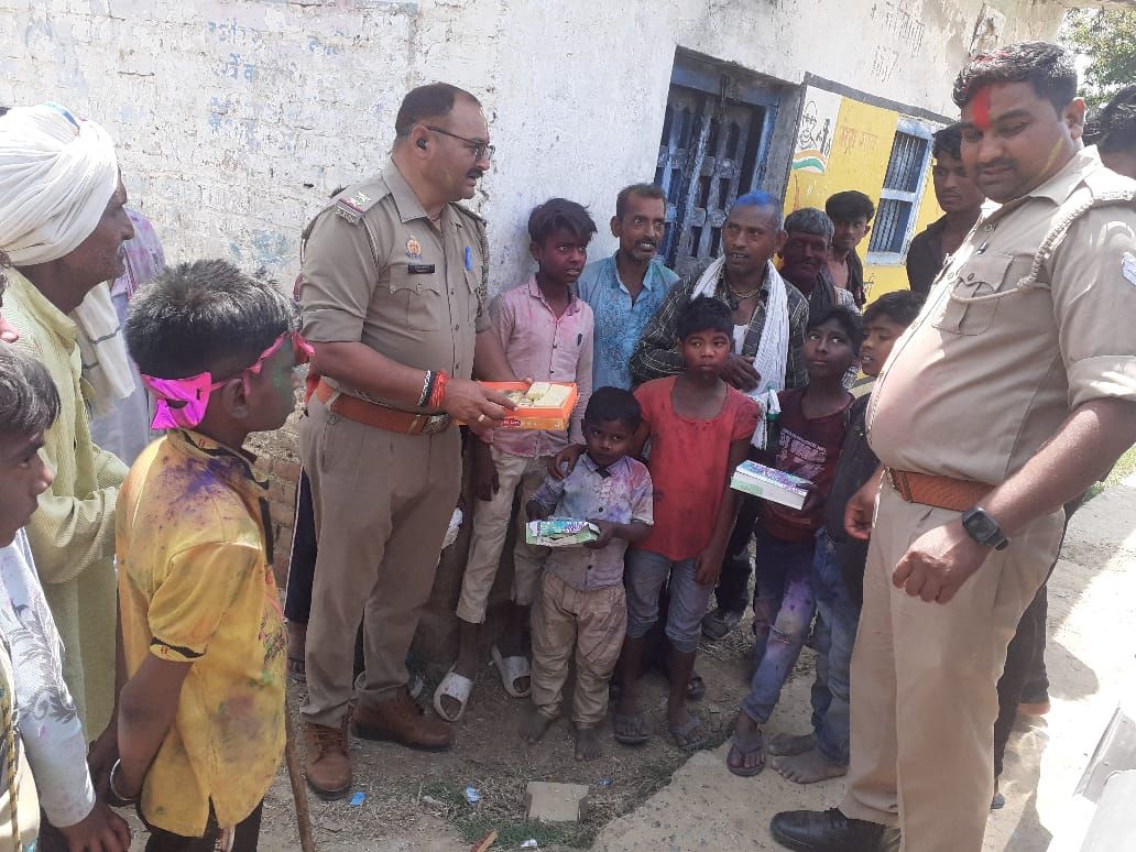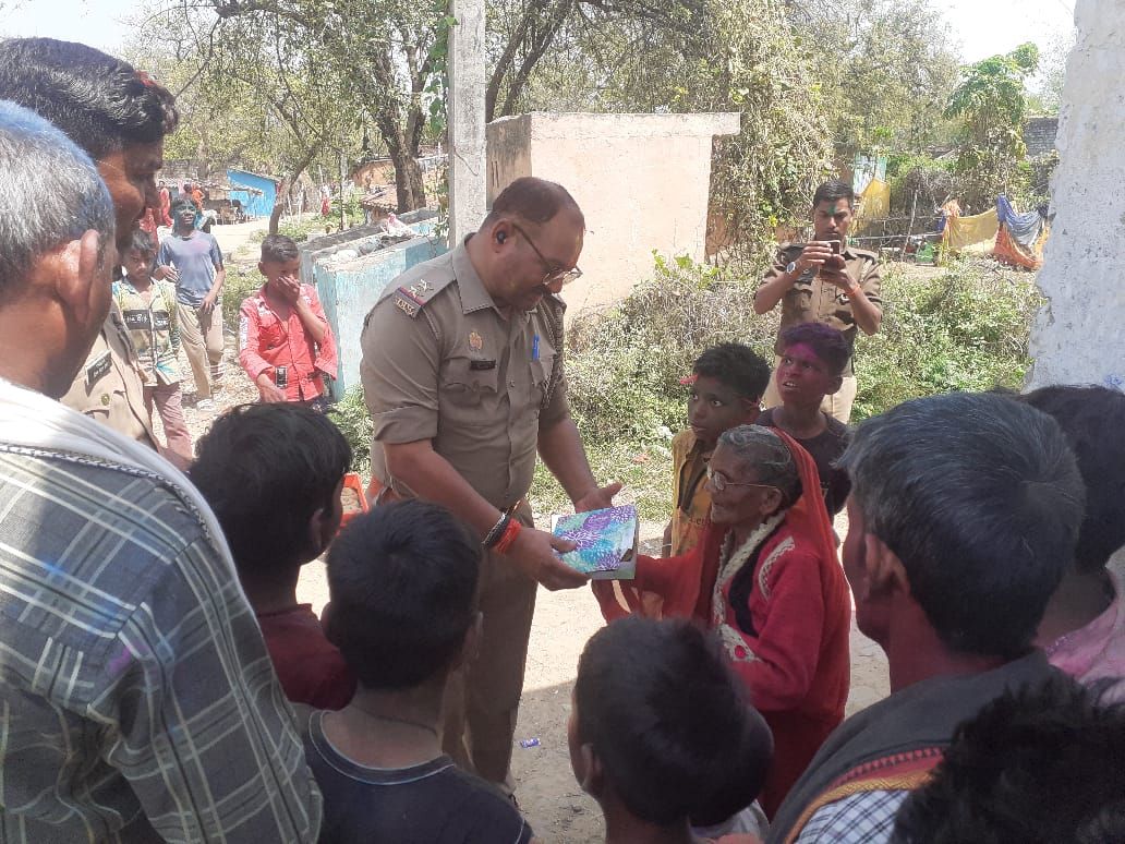 गुरमा/सोनभद्र (ओम प्रकाश गुप्ता) होली के पावन पर्व पर सुबह गुरमा चौकी प्रभारी सुरेश चन्द्र द्विवेदी ने गुरमा चौकी क्षेत्र के दलित बस्ती मे पहुंच कर निर्धन लोगो एंव बच्चो के संग होली से संबंधित खाने-पीने की सामग्री का पैकेट वितरण कर अबीर- गुलाल लगाकर होली पुर्व की शुभकामनाए दी। जरूरत मंदो निर्धन एंव बच्चों ने होली के संबधित खाने पिने की सामाग्री पाकर चेहरे खिल उठे दलित परिवारो एव बच्चो ने उन्हे भी अबीर गुलाम लगाकर आभार जताया। वही चौकी प्रभारी सुरेश चन्द्र द्विवेदी ने बताया की दलित बस्ती मे जाकर गरीबों का सेवा करने से मुझे काफी सुकुन एंव आनन्द मिलता है, वर्दी धारण करने की मुख्य उद्देश्य गरीब असहायों लाचार,पीड़ित की सेवा ही है।