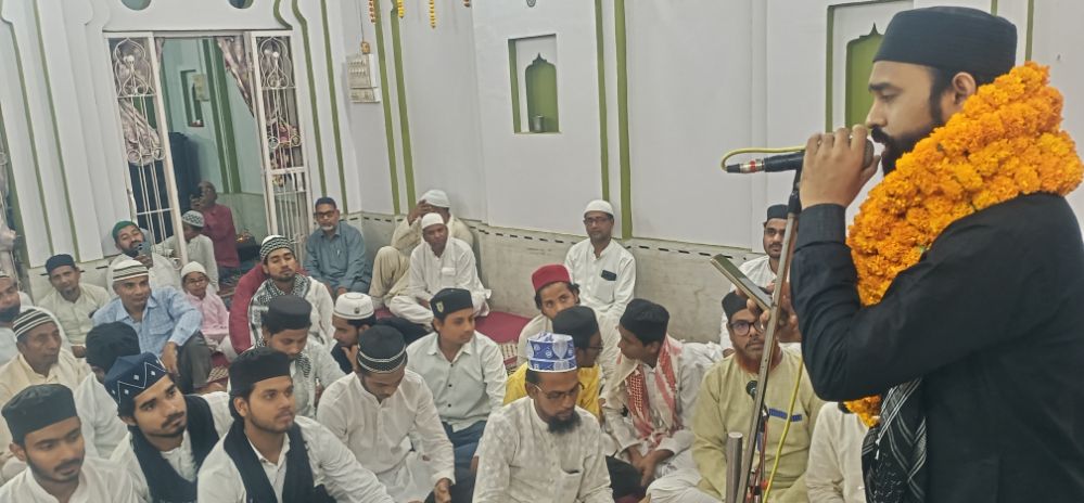 हाफिज रेजाउल मुस्तफा ने जब जी चाहे करूँ काबे का तवाफ़, मुझे काबे की मीनारों का कबूतर कर दे, रिजवान उर्फ सोनू ने हुजूर आपके दर का मैं अदना गदा हुँ, मेरे दम में आका ये दम आपका है । कार्यक्रम में तरावीह की नमाज अदा कराने वाले हाफिज अब्दुर्रज्जाक, मोअज्जिम व एतकाफ पर बैठे अशफ़ाक़ गोल्डन को तोहफा देकर उनकी हौसला अफजाई व खैर मकदम किया गया। अंत में पेशिमाम सईद अनवर हाफिज तौहीद, मौलाना गुलाम सरवर की तकरीर, दुआख़्वानी व दुरुदो सलाम के साथ महफिल का समापन हुआ। महफिले मिलाद की निजामत (संचालन) हाफिज रेजाउल मुस्तफा और हाफिज जहांगीर ने संयुक्त रूप से किया। इस मौके पर मु. शमीम अंसारी, फतेहमुहम्मद, कलीमुल्लाह खान, मेराज अहमद, सभासद शाहिद आलम, हाजी डॉ इस्लामुल हुदा, हाजी सईदु हवारी, मुराद, शहंशाह, तौहीद, कौशर खान, सेराज खान, रोजा भाई, मुख्तार ठेकेदार, इसरार अहमद सहित अन्य अकीदतमंद हजरात मौजूद रहे।