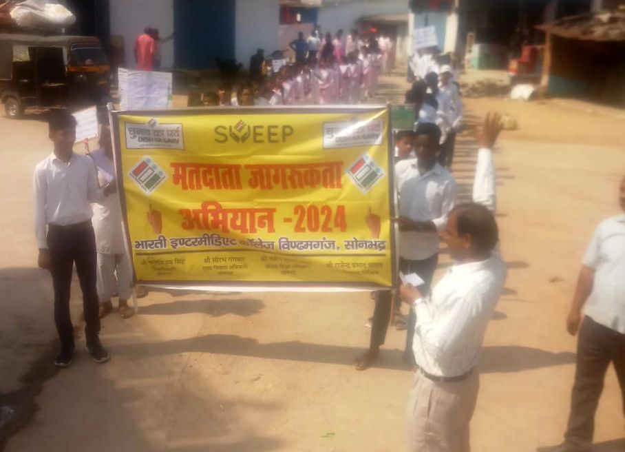 विंढमगंज सोनभद्र (सुमन गुप्ता)। भारतीय इंटरमीडिएट कॉलेज विंढमगंज में आज चुनाव अधिकारी के निर्देशन में मतदाता जागरूकता रैली अभियान के अंतर्गत प्रधानाध्यापक राजेश कुमार के नेतृत्व में छात्रों ने विद्यालय परिसर से होते हुए रांची रीवा राष्ट्रीय राजमार्ग स्टेशन रोड थाना तिराहा हलवाई चौक बाजार, रामलीला ग्राउंड, शिव मंदिर के आबादी वाले क्षेत्र में नारा लगाते हुए रैली निकाला। बच्चों ने के द्वारा जागरूकता के क्रम में नारे लगाए जा रहे थे “सारे काम छोड़ दो, सबसे पहले वोट दो” “जन-जन का यह नारा है, मतदान अधिकार हमारा है” “लोकतंत्र की सुनो पुकार, मत खोना मत का अपना अधिकार, के द्वारा मतदाताओं को आगामी लोकसभा चुनाव में वोट देने के लिए आदि नारों से मतदाताओं को प्रेरित किया गया इस अवसर पर विद्यालय के छात्रों के अलावा शिक्षक राजेश तिवारी, जिलाजीत चौरसिया, अखिलेश चंद्र द्विवेदी, अनिल विश्वकर्मा, उदित नारायण, चंदन कुमार प्रजापति, दिनेश मणि त्रिपाठी, रत्नेश कुमार सिंह, विजय नारायण यादव, शंभू नाथ आदि ने सहयोग किया।
