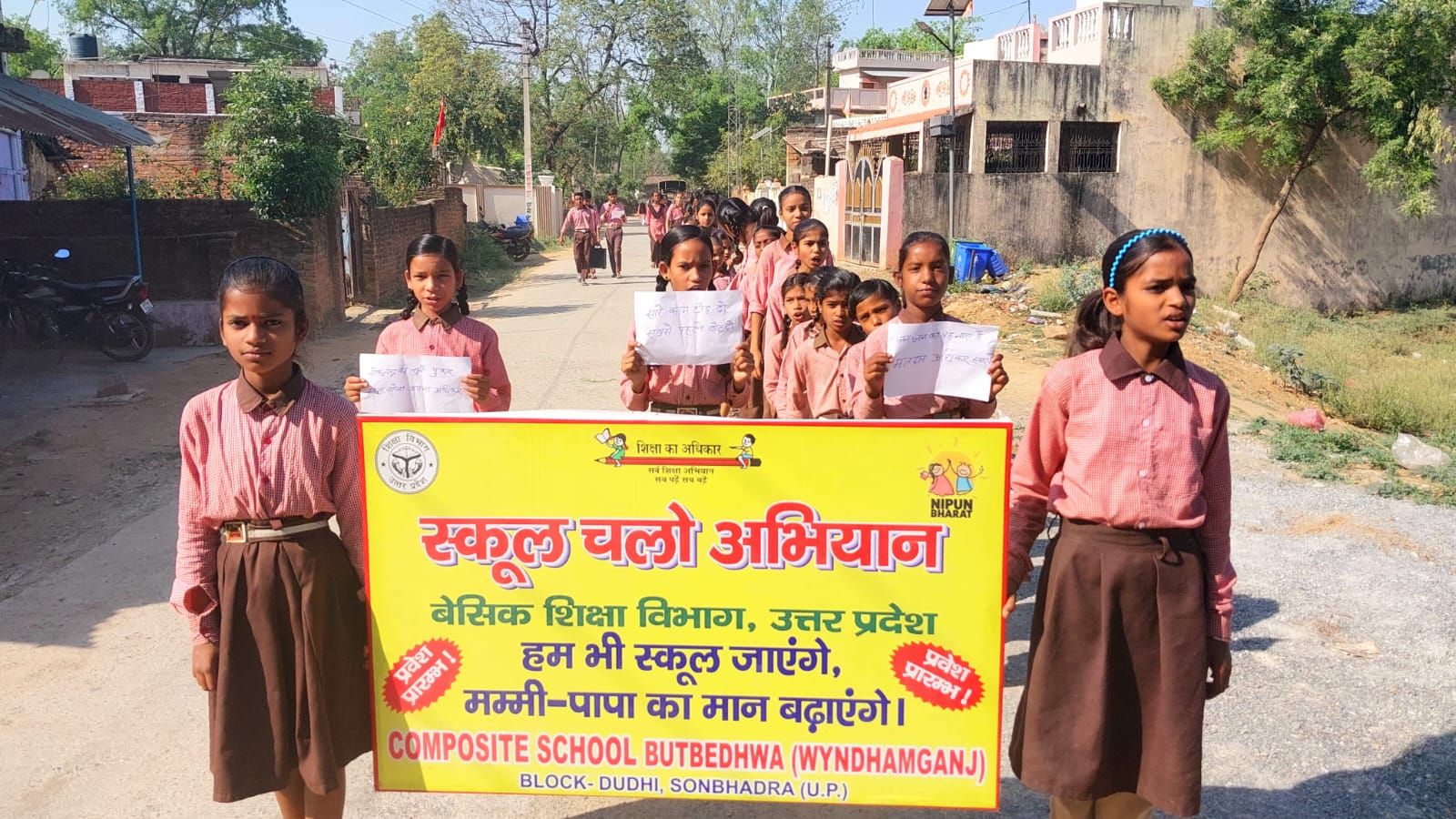 विंडमगंज/सोनभद्र (सुमन गुप्ता) विकास खण्ड दुद्धी के अन्तर्गत ग्राम पंचायत बुटबेढ़वा में स्थित कम्पोजिट विद्यालय विंडमगंज में खण्ड शिक्षा अधिकारी दुद्धी महेन्द्र मौर्य के निर्देशन में स्कूल चलो अभियान एवं मतदाता जागरुकता रैली प्रधानाध्यापक राजकमल के नेतृत्व में बच्चों ने विद्यालय परिसर से होते हुए कहारी मुहल्ला, थाना रोड, स्टेशन रोड, भारतीय इंटर कॉलेज होते हुए मुस्लिम मुहल्ला में निकाला नारा लगाते हुए निकाला बच्चो द्वारा जागरूकता के क्रम में नारा लगाए जा रहे थे हम बच्चो का नारा है, शिक्षा अधिकार हमारा है। हम भी स्कूल जाएंगे, मम्मी पापा का मान बढ़ाएंगे। बच्चों को स्कूल में नामांकन कराने तथा नियमित स्कूल भेजने के लिए जनसमुदाय एवं अभिभावको को प्रेरित किया।