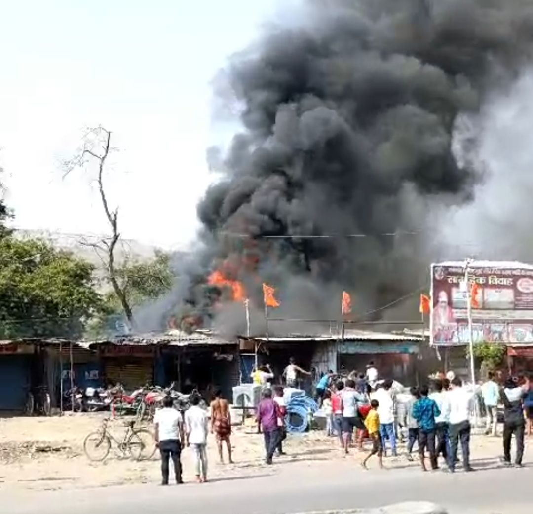 -हार्डवेयर,बाइक सर्विसिंग सेंटर सहित चाय दुकान जलकर हुआ खाक
