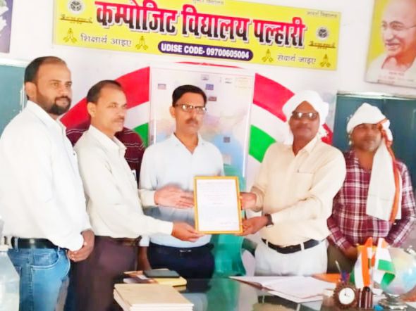 सोनभद्र (राजेश पाठक एड)। पीएमश्री कंपोजिट विद्यालय पल्हारी नगवां सोनभद्र पर डॉ बृजेश कुमार सिंह महादेव ब्लॉक स्काउट शिक्षक नगवां के सौजन्य से बृजेश कुमार सिंह खंड शिक्षा अधिकारी नगवां सोनभद्र को विद्यालय परिवार ने प्रशंसा पत्र देकर सम्मानित किया। इस अवसर पर सर्वश्री जय प्रसाद चौरसिया प्रधानाध्यापक, प्रदीप गुप्ता, ज्ञानेश त्रिपाठी, दीपक मौर्य, पवन सिंह, रमेश कुमार, शिव शंकर एवं उर्मिला देवी के साथ डॉक्टर बृजेश महादेव ने खंड शिक्षा अधिकारी नगवां को प्रशंसा पत्र एवं अतिथि को स्मृति चिन्ह देकर सम्मानित किया।