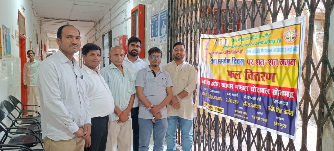 घोरावल/सोनभद्र (अनुराग पांडेय) भारतीय उद्योग व्यापार मंडल के राष्ट्रीय अध्यक्ष रहे पंडित श्याम बिहारी मिश्रा के जन्मदिन पर उत्तर प्रदेश उद्योग व्यापार मंडल घोरावल ने बुधवार को सेवा समर्पण दिवस के रूप में मनाया। जिसमें घोरावल के व्यापार मंडल के पदाधिकारियो ने बुधवार की शाम घोरावल सामुदायिक स्वास्थ्य केंद्र में भर्ती मरीजों मे फल बिस्कुट पानी वितरण किया।व्यापार मंडल के नगर अध्यक्ष दयाशंकर गुप्ता,महामंत्री राजकुमार गुप्ता ने मरीजो को फल बिस्कुट आदि दिया।मौके पर सीएचसी अधीक्षक डॉ कीर्ति आजाद बिंद व स्टाफ के साथ मरीजो मे फल वितरित किया गया। व्यापार मंडल के पदाधिकारियों ने मरीजो का हाल जानते हुए उनके शीघ्र स्वस्थ होने की कामना की।इस अवसर पर डॉ देवेश पांडेय,फार्मासिस्ट आशीष उपाध्याय, एडवोकेट इनामुलहक अंसारी,राजेंद्र कुमार अग्रवाल,अनुराग पांडेय,विजय अग्रहरी,अभिषेक गुप्ता,प्रज्ञान दुबे, स्टाफ नर्स सीमा व नीलम,कोषाध्यक्ष बृजेश गुप्ता आदि लोग उपस्थित रहे।