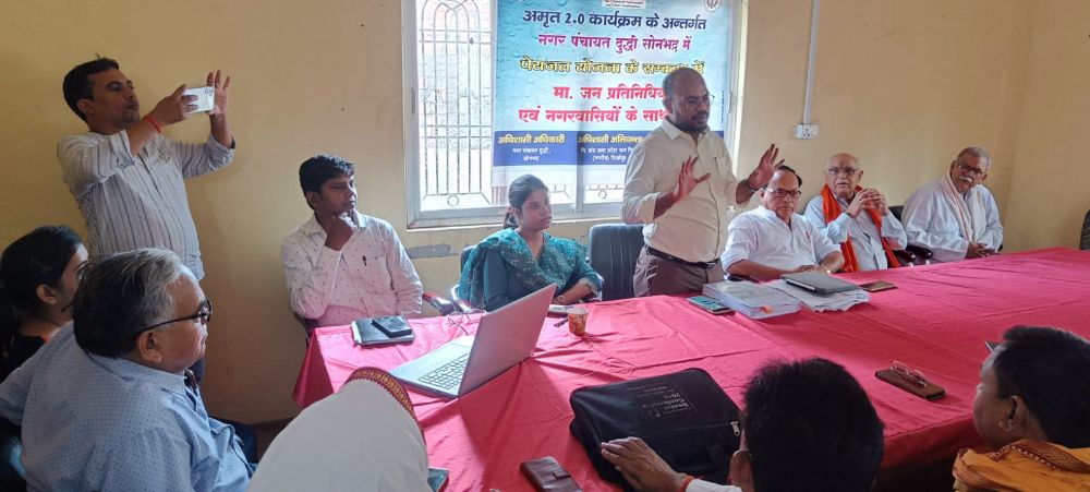 नवागत चेयरमैन कमलेश मोहन की नई कार्यकारिणी ने शपथ के बाद ही मई व जून माह में पानी की उत्पन्न विकट समस्या को देखकर,चेयरमैन ने तत्काल शासन को पत्र लिखा था। जिसका संज्ञान लेते हुए सरकार ने अमृत 2.0 योजना के तहत पेयजल प्रोजेक्ट को हरी झंडी देते हुए, जल निगम को विस्तृत परियोजना तैयार करने के निर्देश दिए थे। अब स्थायी समाधान के लिए 48 करोड़ रूपये की लागत वाली योजना से जल निगम नगरीय द्वारा कनहर नदी से पानी लिफ्टिंग कर, शुद्ध पेयजल की समस्या का स्थाई समाधान निकालने की कवायद तेज कर दी है। नए व अत्याधुनिक तरीके से पाइप लाइन नगर पंचायत के सभी 11 वार्डों में बिछाई जाएगी। जिसका सर्वे का काम पूरा कर शासन को भेजी जा चुकी है,अब अंतिम मुहर लगना शेष है। बैठक में शामिल प्रबुद्धजनों ने आबादी और पेयजलापूर्ति के सम्बंध में कई आवश्यक सुझाव भी दिये। प्रधानमंत्री नरेंद्र मोदी एवं मुख्यमंत्री योगी आदित्यनाथ के ‘हर घर स्वच्छ जल’ मिशन का लाभ अब दुद्धी नगरवासियों को भी मिल सकेगा l वहीं पेयजल की समस्या का स्थाई समाधान नगरवासियों के लिए मिल का पत्थर साबित होगा। बैठक में जल निगम की ओर से अधिशासी अभियंता संजय कुमार,एई आर के पटेल,जेई आशीष यादव उपस्थित रहे। इसके अलावा चेयरमैन कमलेश मोहन,ईओ ऋचा यादव,डॉ प्रकाशचंद्र जायसवाल,व्यापार मंडल अध्यक्ष अमरनाथ,योग गुरु लक्ष्मण सेठ, सुरेन्द्र अग्रहरि, जेबीएस संरक्षक कन्हैया लाल अग्रहरि,अध्यक्ष पंकज जायसवाल,वरिष्ठ उपाध्यक्ष सुरेन्द्र गुप्ता,पूर्व सभासद महेंद्र सिंह,लल्लन कसेरा,अधिवक्ता शिवशंकर प्रसाद, दिनेश कुमार,जितेन्द्र चंद्रवंशी,मनीष जायसवाल, सभासद मोनू सिंह, निरंजन कुमार,धीरज जायसवाल, सोनू खान,आमेश अग्रहरि,राकेश आजाद,शाहिद आलम,आनंद कुमार, मोहित अग्रहरि, अन्नू,अंका समेत कई लोग मौजूद रहे।
