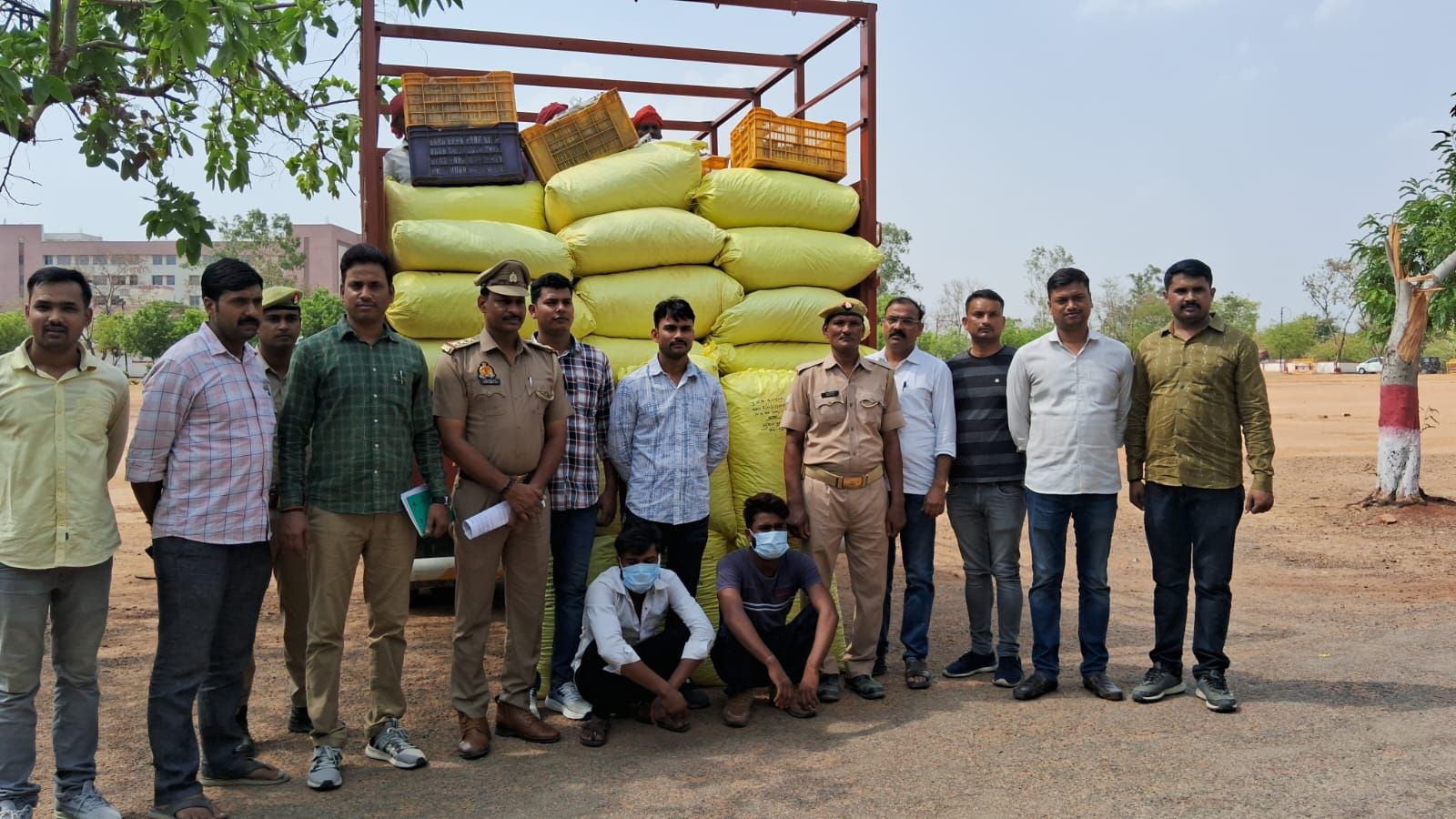 सोनभद्र पुलिस अधीक्षक यशवीर सिंह के निर्देशन में अवैध मादक पदार्थों की तस्करी करने वाले तस्करों के विरुद्ध सोनभद्र पुलिस के निरन्तर प्रहार की कड़ी में अपर पुलिस अधीक्षक (मुख्यायल) श्री कालू सिंह व क्षेत्राधिकारी नगर राहुल पाण्डेय के पर्यवेक्षण में दिनांक 07.06.2024 को थाना रॉबर्ट्सगंज व एसओजी/सर्विलांस टीम द्वारा अपने प्रभावी आसूचना संजाल के इनपुट से समय रात्रि 21.00 बजे थाना रॉबर्ट्सगंज क्षेत्र के सब्जी मण्डी से 01 अदद DCM ट्रक संख्य़ा UP 70 NT 5080 में आम लादकर उसके बीच आम के कैरट में गांजा छिपाकर उड़ीसा प्रान्त के रायगढ़ा से लोड करके रॉबर्ट्सगंज के रास्ते प्रयागराज ले जा रहे 05 कुन्तल 04 किग्रा अवैध गांजा (अनुमानित कीमत गांजा रुपये 01 करोड़) के साथ 02 नफर अन्तर्जनपदीय गांजा तस्करों को गिरफ्तार किया गया। इस बरामदगी व गिरफ्तारी के सम्बन्ध में थाना रॉबर्ट्सगंज पर मु0अ0सं0-407/2024 धारा 8/20/29/60 NDPS Act का अभियोग पंजीकृत कर अग्रेतर विधिक कार्यवाही की जा रही है ।