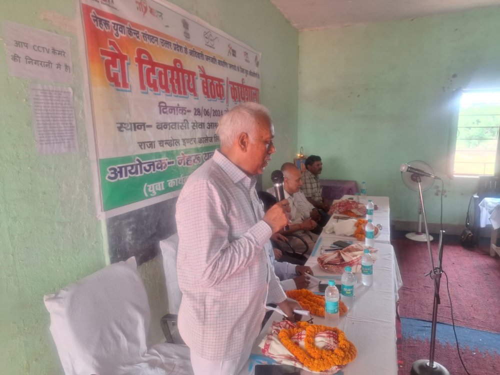 युक्त बनाना है तो बरगद,पीपल और नीम का पेड़ जरूर लगाए।विद्यालय के प्रबंधक और चर्चित कवि लेखक डा लखन राम जंगली ने कविताओं के माध्यम से सोनभद्र के उघोगों से उपज रही बीमारियो को इंगित किया। और बताया कि आदिवासी समाज हमेशा से स्वाभिमानी रहा है वह दूसरो के हक को लूट कर नही खाता है।पर्यावरण कार्यकर्ता जानत नारायण विश्वकर्मा ने ऊर्जा की राजधानी कहे जाने वाले ऊर्जांचल में उधोगों से निकले प्रदूषण से हवा,पानी मिट्टी प्रदूषित होने की तथ्य परख जानकारी दी और कहा की बिनारिया लगातार बढ़ रही है और पानी पीने योग्य नहीं है। रिहंद जलाशय से पानी आपूर्ति को लेकर भी सवाल उठाया। उन्होंने युवा अधिकारियों और क्षेत्रीय युवाओं को बताया कि हम जो भी काम की जिमेदारी मिली है।उसे ईमानदारी से निभाने के लिए खुद,परिवार और समाज से लड़ना होंगा।विचार के मंथन की लड़ाई को जीत लेंगे तो कम करने में कोई भी बाधा आए आप पार कर लेंगे।ईमानदारी से जीने वाला अकेला भी पड़ सकता है।लेकिन से वह हार नही सकता।उप निदेशक अनिल सिंह और कपिल देव ने नेहरू युवा केंद्र संगठन के उद्देश्य पर प्रकाश डाला।अधिवक्ता शिव शंकर गुप्ता ने युवाओं को खेल के प्रति जागरूक होने की बात कही और कहा की खेल से शारीरिक मानसिक विकास होता है। कार्यक्रम में पन्द्रह जनजाति जिलों के जिला युवा अधिकारी प्रतिभाग किया इस दौरान अधिकारियों ने विद्यालय परिसर में पौध रोपण किया। मौके पर नम्रता,राशि, रवि कुमार देव मति,हेमंत, ब्रह्मदेव,ललित देवड़ा, सचिन,संजीव,प्रीति श्रीवास्तव आदि उपस्थित रहे।