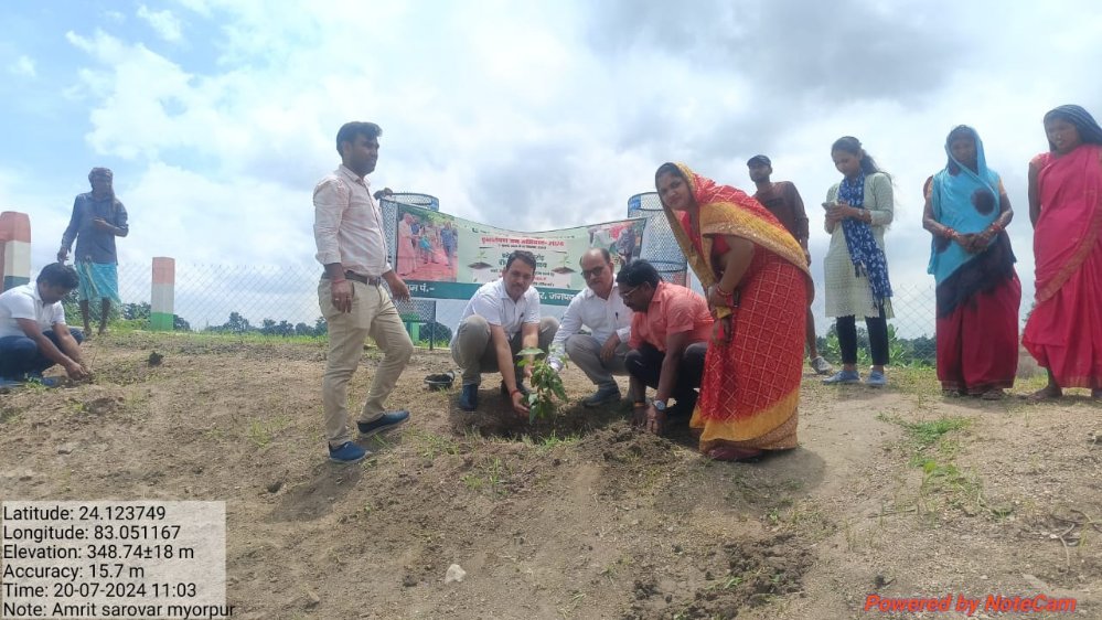 म्योरपुर स्थानीय कस्बा स्थित होलिका दहन स्थल के बगल में बन अमृत सरोवर पर शनिवार को खण्ड विकास अधिकारी एवम सहायक विकास अधिकारी ग्राम प्रधान संगीता गणेश जायसवाल के साथ सयुक्त रूप से फल दार बृक्षो का रोपण कर पर्यावरण संरक्षण का संदेश दिया खण्ड विकास अधिकारी हेमंत कुमार सिंह ने कहा की एक पेड़ सौ पुत्रो के समान होती है जैसे हम अपने बच्चो का पालन पोषण करते है। पालन पोषण के बदले में बच्चे हमारे बुढ़ापे का सहारा बनते हैं ठीक उसी प्रकार जब एक पौधा वृक्ष बनकर तैयार होता है तो उससे हमें शुद्ध हवा समय पर बारिश