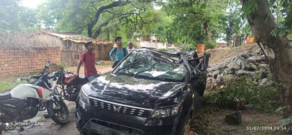 दुद्धी, सोनभद्र। क्षेत्र के बघाडू गाँव मे रेंज कार्यालय के पास मंगलवार की देर रात अनियंत्रित तेज रफ्तार एसयूवी कार पेड़ से टक्करा गयी। कार सवार मोहम्द रजा पुत्र जाहीद हुसैन उम्र 23 वर्ष, अब्दुल्ला पुत्र वहीस अली उम्र लगभग 12 वर्ष व चालक अशरफ पुत्र अशफाक उम्र लगभग 26 वर्ष सभी निवासी ग्राम दीघुल गम्भीर रूप से घायल हो गये। रात्रि मे एंबुलेंस की सहायता से सभी घायलों को दुद्धी अस्पताल लाया गया। तीनों की हालत गंभीर होने के कारण उपस्थित चिकित्सक ने प्राथमिक उपचार के बाद वाराणसी के लिए रेफर कर दिया।