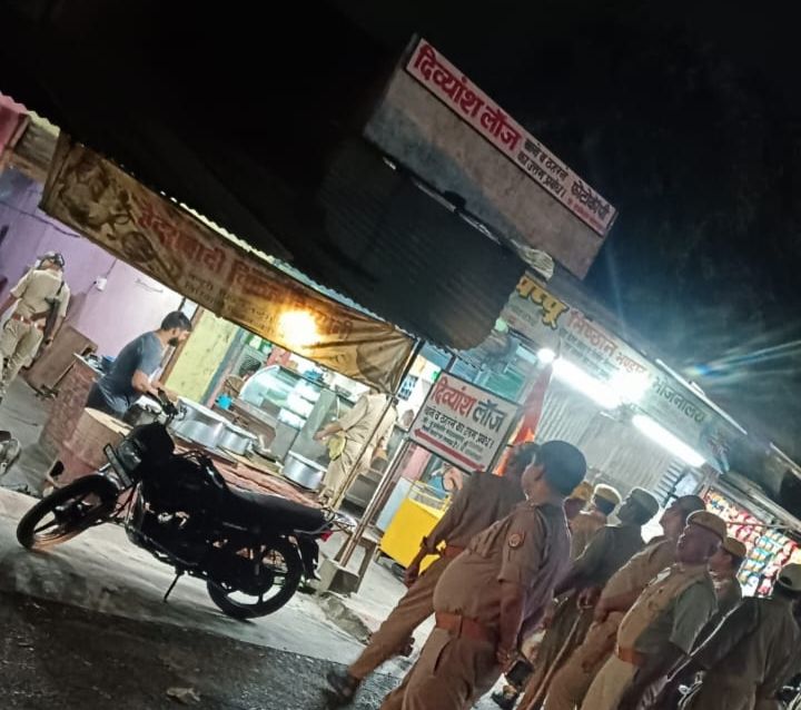 एक्शन मे अखिलेश मिश्रा होटल मे चेकिंग करने के साथ फुट मार्च कर लोगों को दिया सुरक्षा का वादा