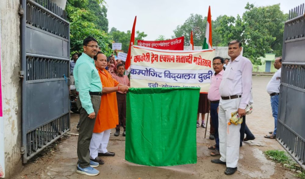 दुद्धी, सोनभद्र। शुक्रवार को शासन के निर्देशानुसार स्वतंत्रता सेनानियों की याद में काकोरी काण्ड के 100 वर्ष पूर्ण होने पर “काकोरी ट्रेन एक्शन शताब्दी महोत्सव” धूमधाम से मनाया गया।सर्वप्रथम नगर पंचायत अध्यक्ष कमलेश मोहन ने हरी झंडी दिखाकर बच्चों की रैली को रवाना किया। अपने उद्बोधन में चेयरमैन ने कहा कि भारतीय स्वतंत्रता संग्राम में अनेकों सेनानियों ने अपने प्राणों की आहुति दे दी। काकोरी काण्ड 9 अगस्त,1925 को अंग्रेजों द्वारा देश के खजाने व शस्त्रों को ट्रेन द्वारा अन्यत्र ले जाया जा रहा था। उस बहुमूल्य राष्ट्रीय निधि को वापस छीनकर सेनानियों ने अंग्रेजों की नींद हराम कर दी थी।