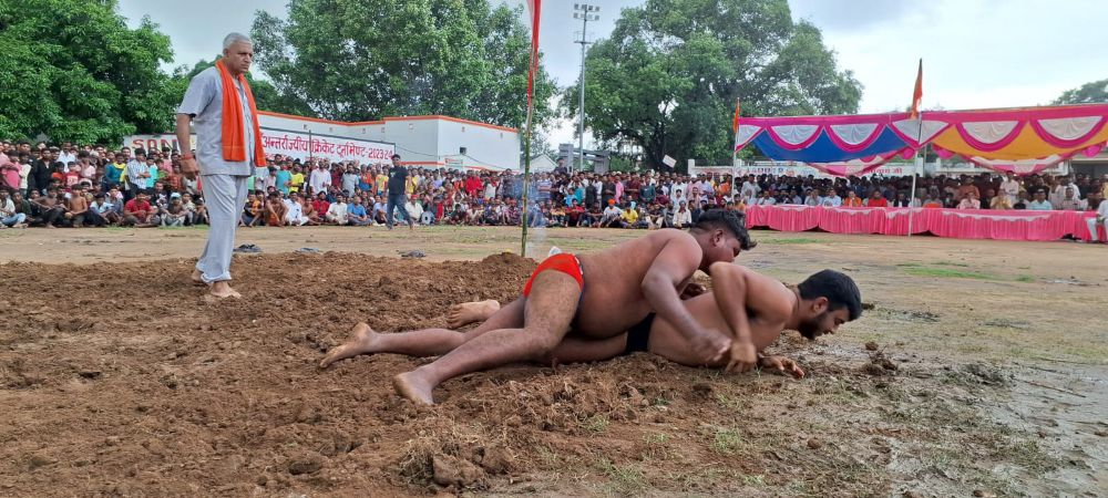 दुद्धी, सोनभद्र। जय बजरंग अखाड़ा समिति के तत्वाधान में नागपंचमी पर्व पर शुक्रवार को दुद्धी खेल मैदान पर ऐतिहासिक दंगल का आयोजन किया गया। जिसमें क्षेत्र समेत पूर्वांचल के दर्जनों पहलवानो ने जबर्दस्त कुश्ती का प्रदर्शन कर, खूब वाहवाही लूटी व ईनाम बटोरे। शाम करीब चार बजे से शुरू हुए दंगल प्रतियोगिता का शुभारंभ आखाड़े का विधि विधान पूर्वक पूजन करने के साथ हुआ।इसके बाद मल्ल युद्ध का प्रदर्शन शुरू होते ही दुद्धी, खजुरी, धनौरा, दिघुल, रजखड़, मझौली, अमवार, नगवां, कटौली, कटौधी के अलावा रेनुकूट, ओबरा, चोपन के साथ ही गोरखपुर, आजमगढ़ के पहलवानो ने भी अपने कला व दाव पेंच का जबरदस्त प्रदर्शन किया। इसके पूर्व जय बजरंग अखाड़ा समिति के अध्यक्ष पंकज जायसवाल एवं संरक्षक रामलोचन तिवारी व कन्हैया लाल अग्रहरि की अगुवाई में महावीर मंदिर में स्थित केंद्रीय अखाड़ा से झंडा जुलुस ढोल-नगाड़ा व तरशा के साथ निकाला गया। समूचे नगर का भ्रमण करते हुए खेल मैदान तक पहुंचे। वहां हजारो लोगों की उपस्थिति में अखाड़ा की औपचारिकता पूरी करने के बाद दंगल प्रतियोगिता शुरू कराया।