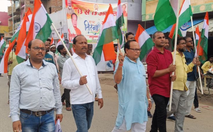 रैली की अगुवाई कर रहे चेयरमैन कमलेश मोहन ने कग कि इस वर्ष हर घर में तिरंगा फहराया जाएगा। यह अभियान स्वतंत्रता दिवस को उत्सव के रूप में मनाने के लिए चलाया जा रहा है। अभियान के तहत आज तिरंगा यात्रा निकाली गयी है,प्रतिष्ठान और लोगों के घरों में तिरंगा फहराया जाएगा।इस मौके पर सभासद निरंजन कुमार,आनंद कुमार,राकेश आजाद, खान,मोनू सिंह, अन्नू, धीरज जायसवाल, आमेश अग्रहरि, शाहिद सहित कई लोग मौजूद रहे।