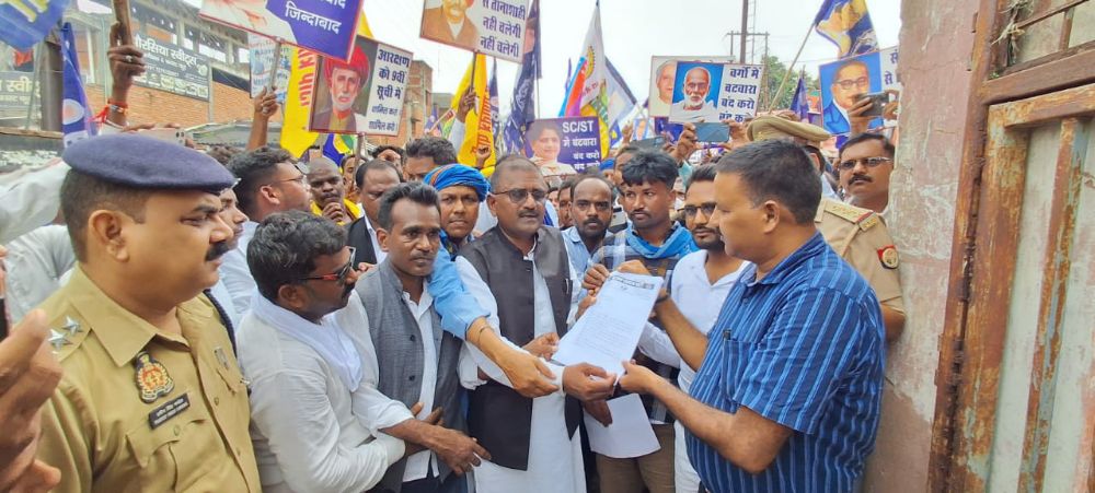 एससी एसटी आरक्षण को लेकर बसपा व आज़ाद पार्टी ने प्रदर्शन कर सौंपा ज्ञापन
