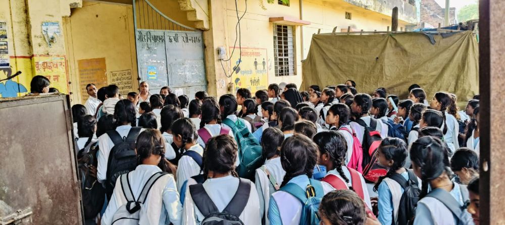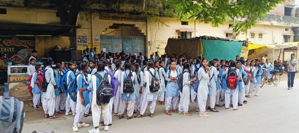 सैकड़ों छात्राओं के देर से पहुंचने पर कालेज का गेट बंद, हंगामा