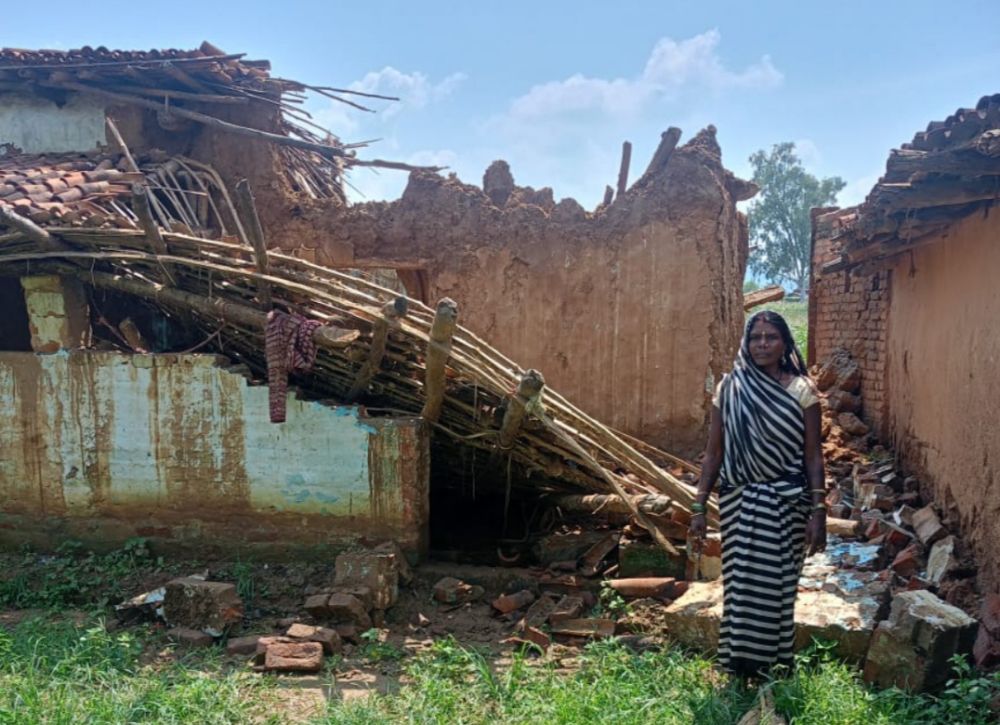 (फोटो कैप्सन-जोरुखाड़ में राम अधार अगरिया का गिरा घर)