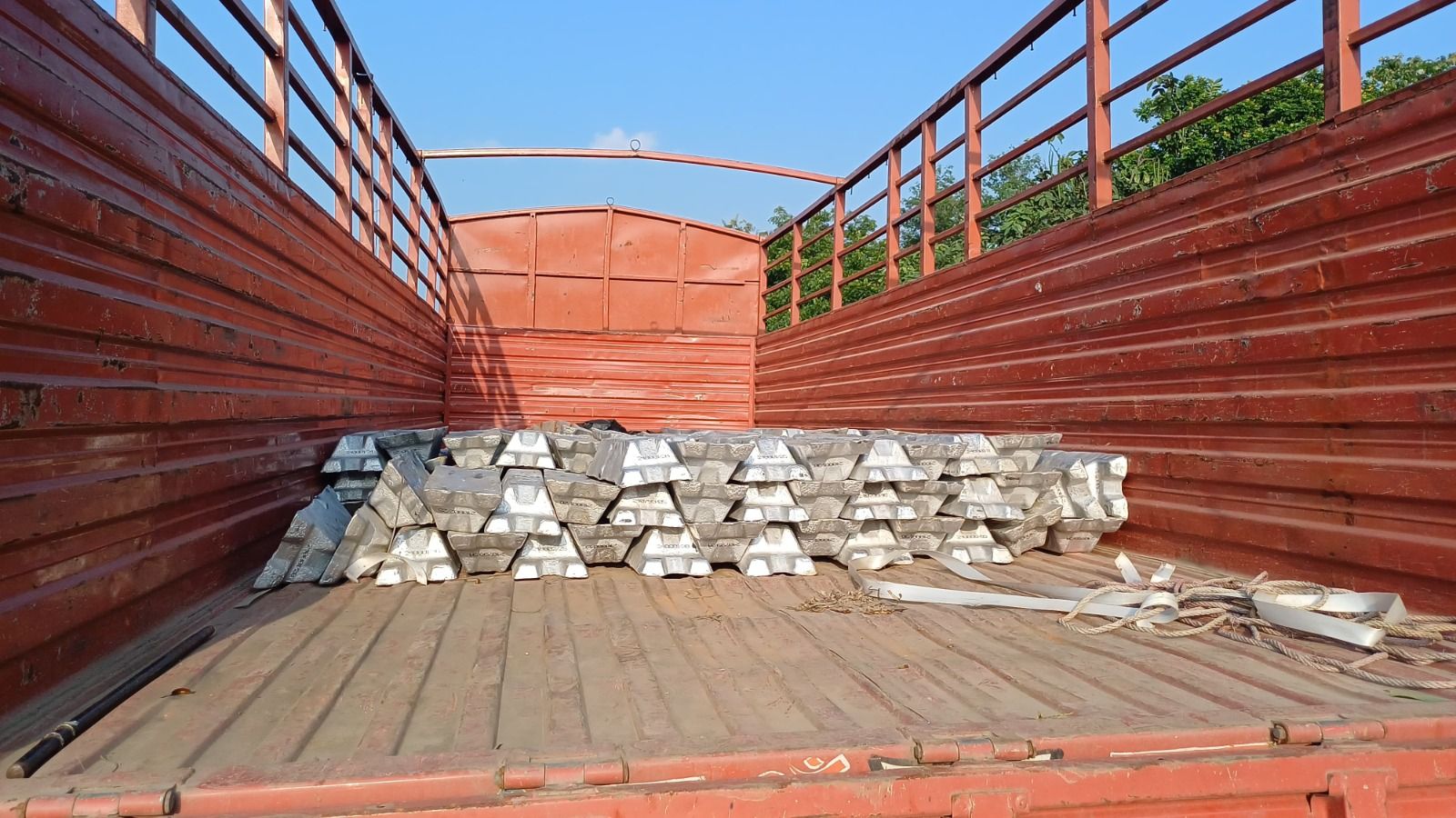 1- माल एल्यूमिनियम इंगट कुल 10 टन ( कीमत 31 लाख रुपये ) ।