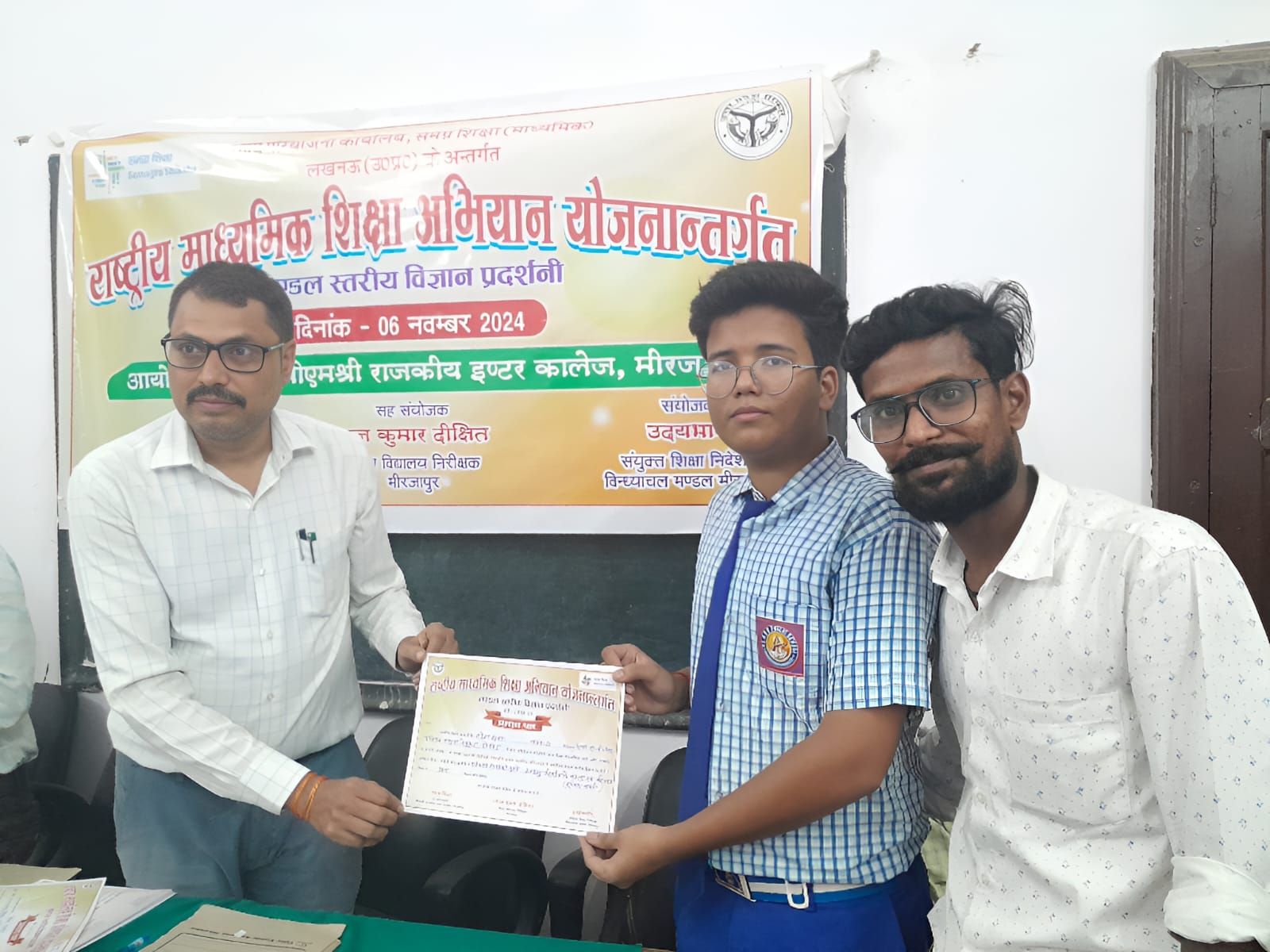 रेणुकूट/सोनभद्र (रामकुमार गुप्ता) मुर्धवा रेणुकूट नगर में स्थित सेंट ए बी आर पब्लिक स्कूल के बच्चो ने मंडल स्तर पर हुई विज्ञान प्रतियोगिता में अपना परचम लहराया है। मिर्ज़ापुर के राजकीय इंटर कालेज में बुधवार को आयोजित मंडल स्तरीय विज्ञान प्रदर्शनी प्रतियोगिता में सेंट ए बी आर पब्लिक स्कूल के छात्र व् छात्राओं ने शिक्षक गजेंद्र प्रताप सिंह एवं शिक्षिका संस्कृति पाण्डेय के निर्देशन में सम्मिलित हुए, जिसमे जूनियर वर्ग में १० वी के छात्र रुद्रेश शुक्ला व अक्षत गुप्ता ने प्रथम स्थान प्राप्त किया, वहीं सीनियर वर्ग में विद्यालय की १२ वी की छात्रा नंदिनी शुक्ला व ग्यारहवीं के छात्र अमृतांशु ने तृतीय स्थान प्राप्त किय। यही बच्चे बीतें माह की 28 तारीख को जनपद स्तरीय विज्ञान प्रदर्शनी प्रतियोगिता में भी दोनों वर्गों में तृतीय स्थान प्राप्त कर मंडल स्तर के लिए चयनित हुए थे। मंडल स्तर पर दोनों वर्गों में प्रथम व तृतीय स्थान प्राप्त करने के उपरांत उपरोक्त छात्र व छात्राऐं राज्य स्तरीय विज्ञान प्रदर्शनी, लखनऊ में आयोजित होने वाले प्रतियोगिता में चयनित होकर विद्यालय का प्रतिनिधित्व करेंगें। छात्रों की सफलता पर विद्यालय परिवार ने हर्ष जताया है। विद्यालय के प्रबंधक आशीष सिंह ने कहा है कि उनके छात्रों ने विद्यालय के साथ साथ रेणुकूट नगर व सोनभद्र जनपद का नाम रोशन किया है, उन्होंने छात्रों को प्रतियोगिता के लिए शुभकामनाये दिया है।