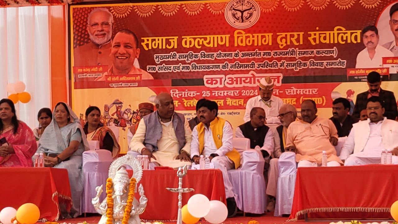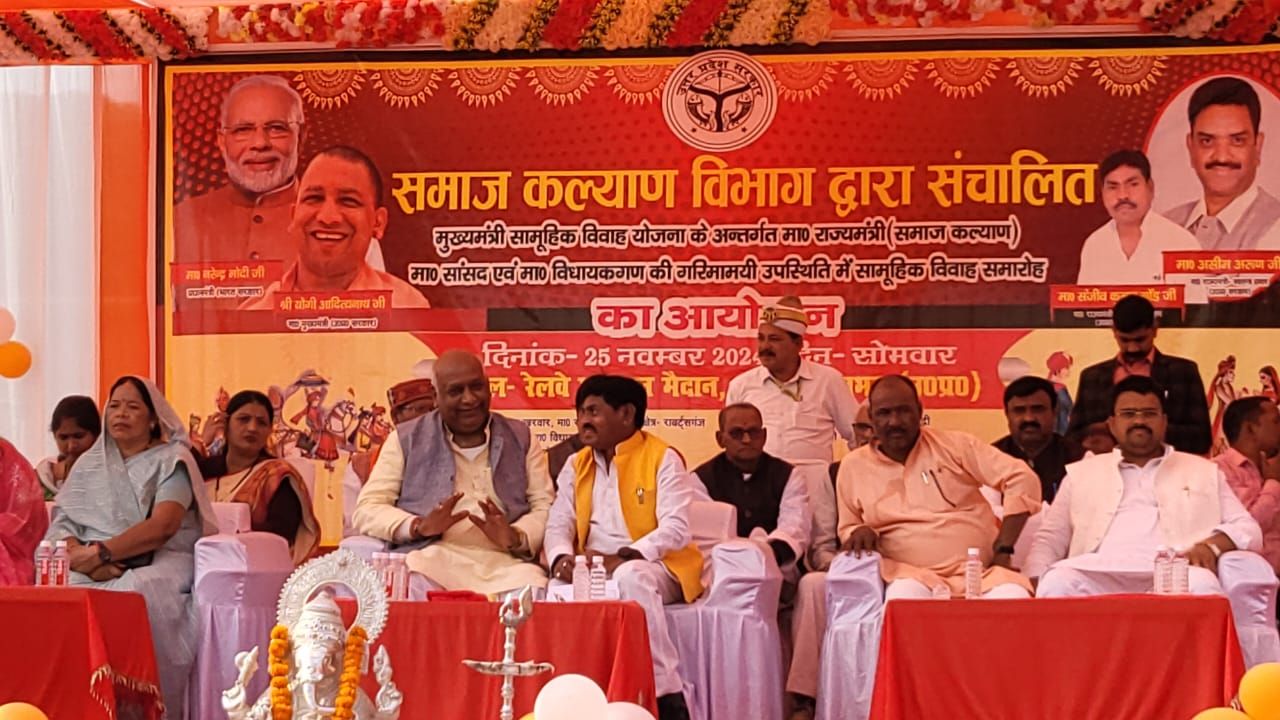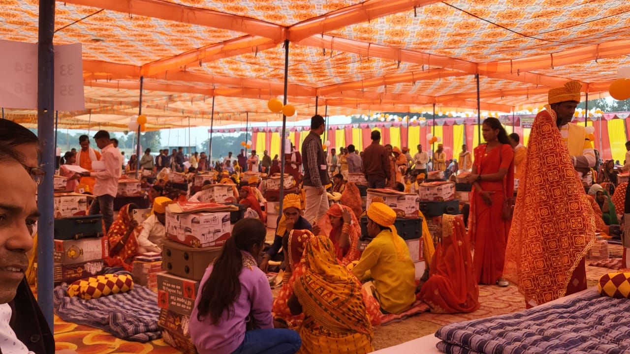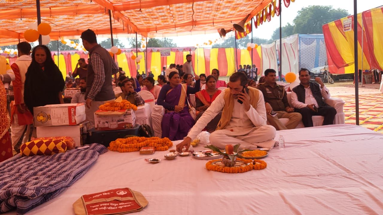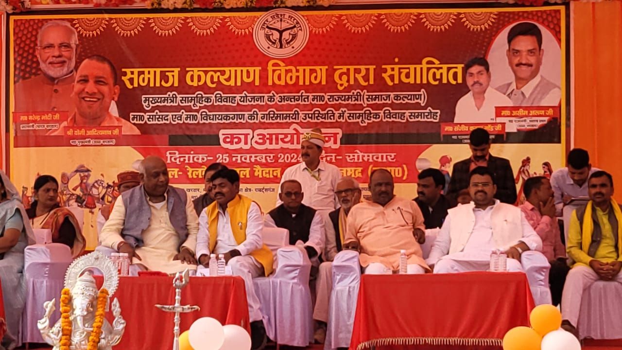 चोपन/सोनभद्र (गुड्डू मिश्रा) 72 जोड़ों का सामूहिक विवाह हुआ। समाज कल्याण विभाग द्वारा चौपट फुटबाल मैदान में कुल 72 जोड़ों का सामूहिक विवाह प्रधान पुजारी दिलीप पांडे व उनकी टीम ने मंत्रोच्चार के साथ विधि विधान पूर्वक संपन्न कराया गया। मुख्य अतिथि समाज कल्याण राज्य मंत्री संजीव गौण , पूर्व सांसद नरेंद्र कुशवाहा,पूर्व राज्य सभा सदस्य रामसकल,ब्लाक प्रमुख चोपन लीला गौण, संजीव तिवारी, बीडीओ शुभम बरनवाल, रामसुंदर साहनी,प्रदीप अग्रवाल,संजय जैन ,राजेश अग्रहरी समेत ब्लाक कर्मी व समाज कल्याण विभाग के अधिकारी कर्मचारी गण उस्थित रहे।