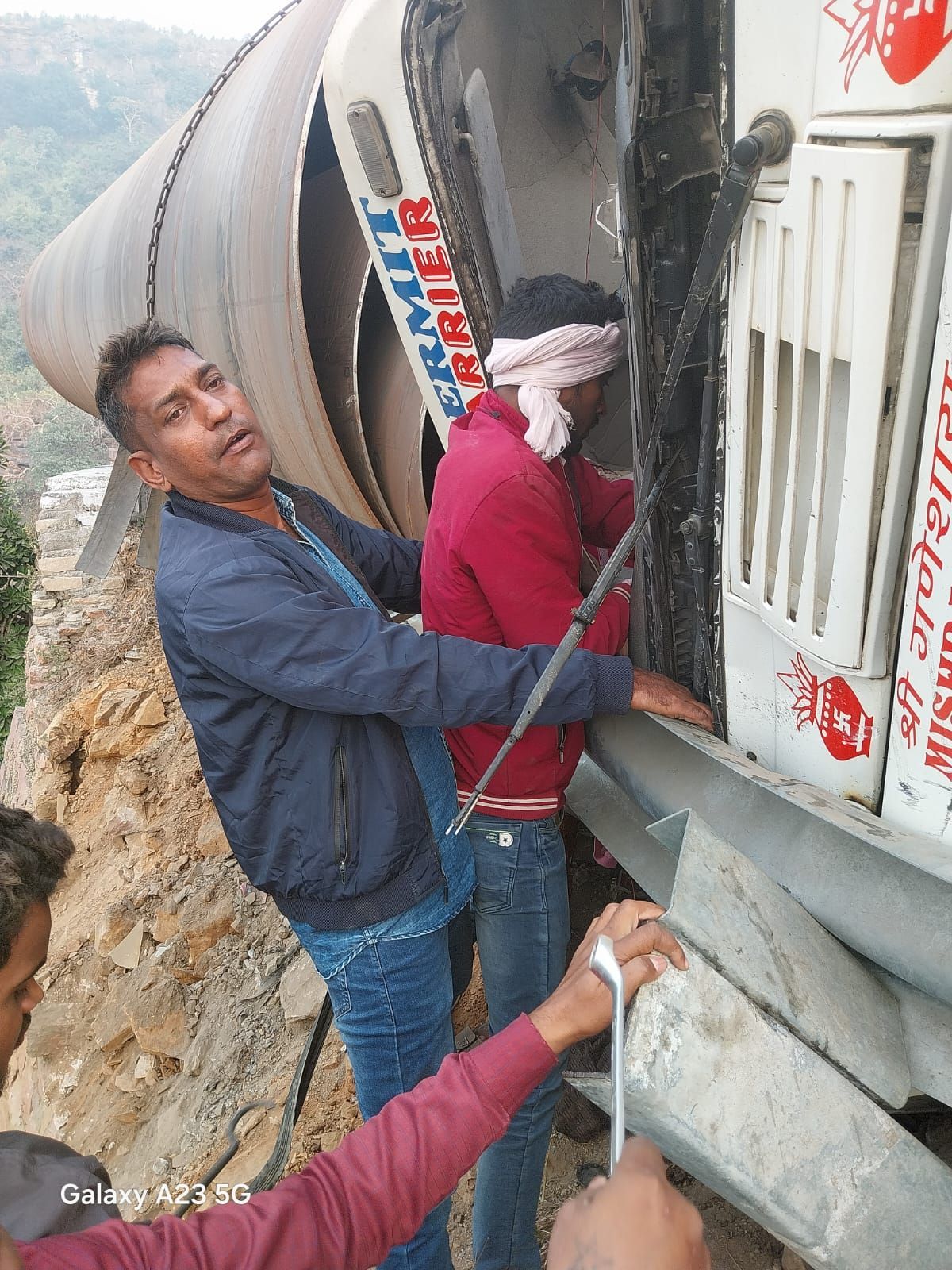 -मथुरा से पाइप लादकर सिंगरौली जा रही थी टेलर ट्रक