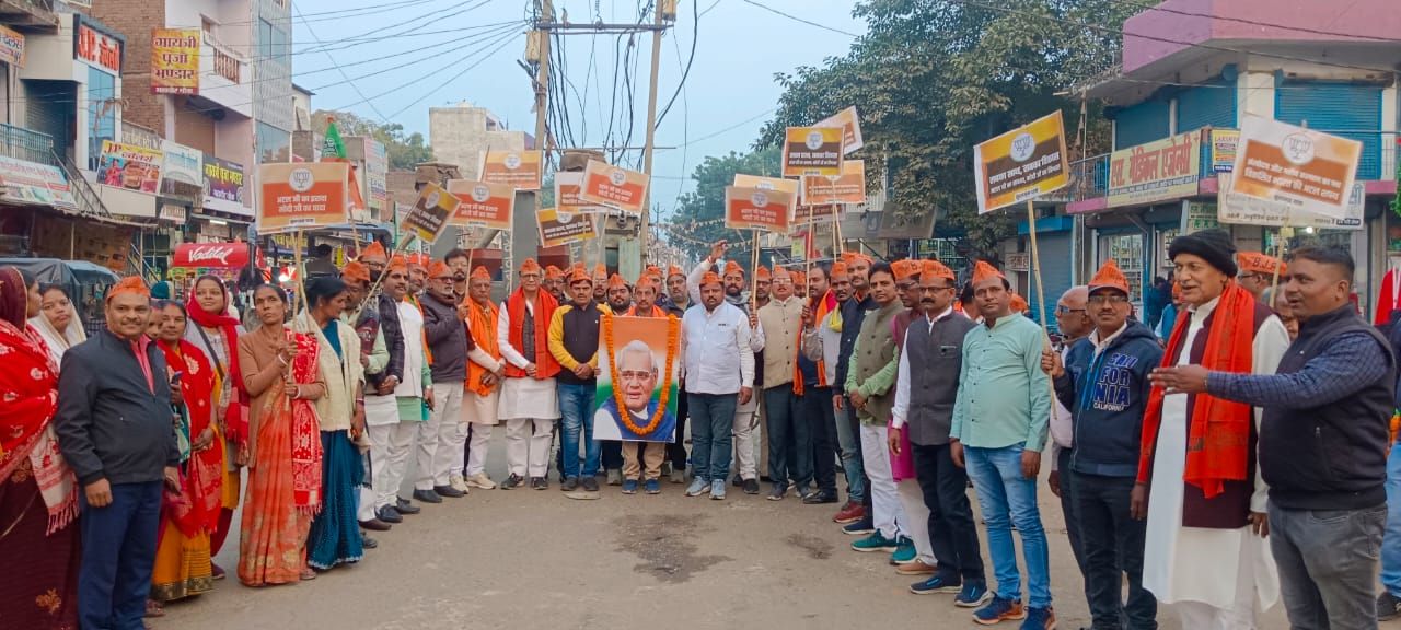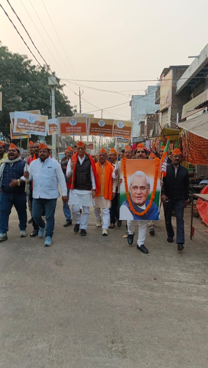 अनपरा/सोनभद्र अनपरा मंडल अध्यक्ष अभिषेक विश्वकर्मा के नेतृत्व में सुशासन यात्रा निकाला गया। बीजेपी अनपरा मंडल अध्यक्ष अभिषेक विश्वकर्मा की अध्यक्षता में भारत रत्न से सम्मानित परम श्रद्धेय अटल बिहारी वाजपेई की जयंती के शुभ अवसर को सुशासन दिवस के रूप में अनपरा मंडल के महावीर चौक पर अटल जी के चित्र पर पुष्पांजलि अर्पित कर सुशासन यात्रा निकाला गया साथ में अटल जी के कार्यकाल के समय के कार्यकर्ताओं का अंगवस्त्र देकर सम्मानित किया गया। कार्यक्रम के मुख्य अतिथि अनिल सिंह गौतम जिला उपाध्यक्ष के जैन जी शक्ति नगर विकास प्राधिकरण के सदस्य, जगदीश वैसवार पूर्व मंडल अध्यक्ष प्रभा शकर मिश्रा, मनीष श्रीवास्तव,संजय तिवारी ने उनकी जीवनी पर प्रकाश डाला महामंत्री प्रमोद शुक्ला ने कार्यक्रम का संचालक किया कार्यक्रम में मुख्य रूप से उपस्थित महामंत्री ने प्रमोद शुक्ला, कृष्णा सिंह, सरजू बैसवार, रामनरेश यादव, शिव प्रकाश वैसवार विवेक सिंह,मनोज चौरसिया, शुगुल किशोर,अनामिका जायसवाल,कुशाग्र मिश्रा सहित तमाम लोग मौजूद रहे।
