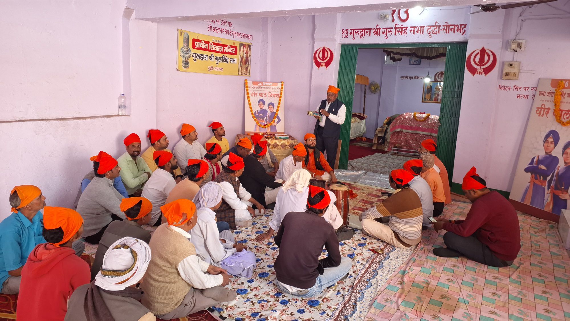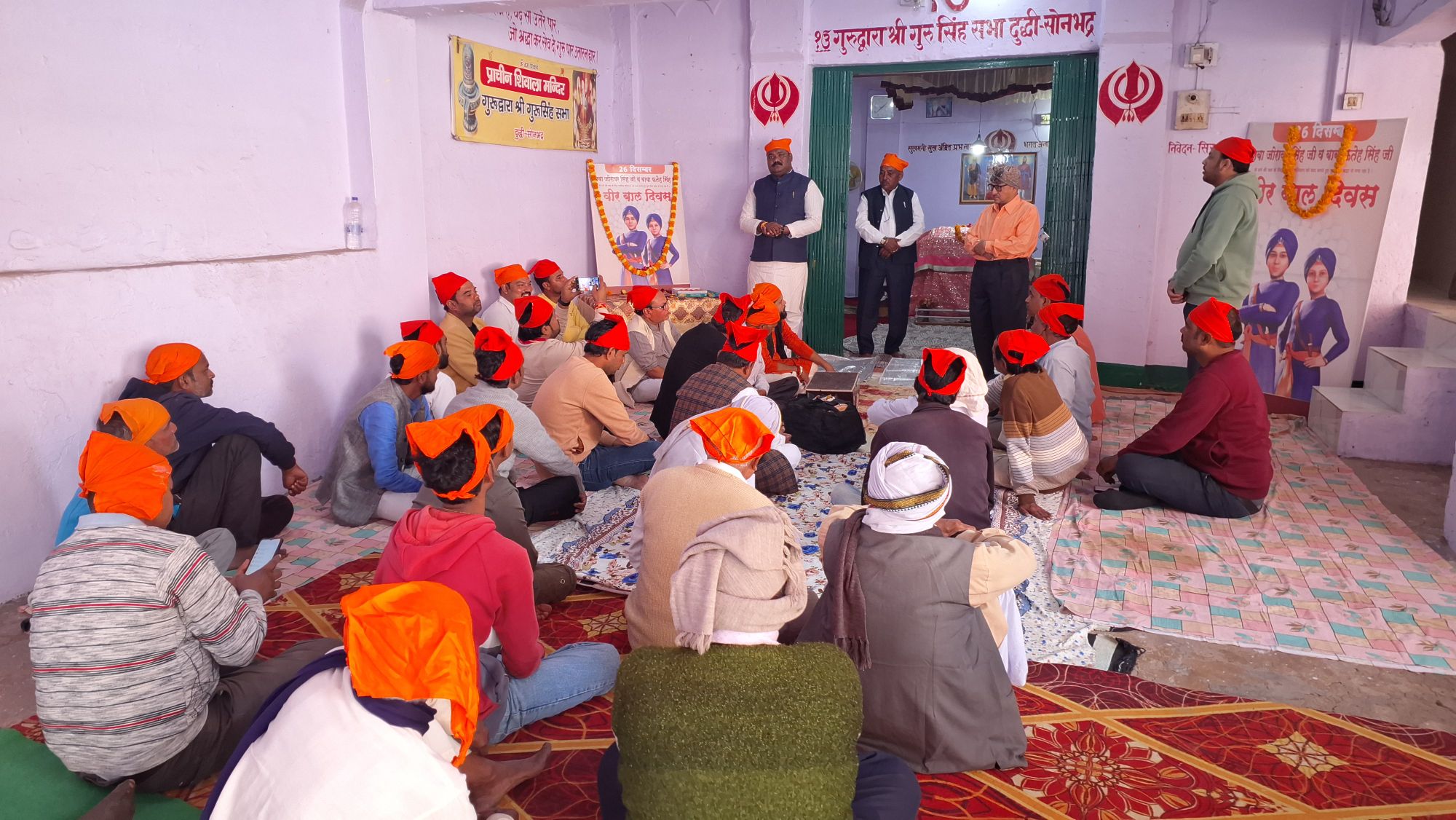 दुद्धी। वृहस्पतिवार को स्थानीय शिवाला मंदिर स्थित गुरुद्वारे में भाजपा दुद्धी मंडल द्वारा वीर बाल दिवस पर कार्यक्रम आयोजित किया। कार्यक्रम की अध्यक्षता मंडल अध्यक्ष सुमित सोनी ने किया। कार्यक्रम के दौरान कीर्तन का आयोजन हुआ। समापन के बाद अरदास की गई। अरदास अजित सिंह ने किया। कार्यक्रम के समापन के बाद प्रसाद वितरित किया गया। वक्ता सुरेंद्र अग्रहरि, चेयरमैन कमलेश मोहन, श्रवण सिंह गोंड ने गुरु गोविंद सिंह जी के साहिबजादो को याद किया। बताया कि गुरु गोविंद सिंह जी के वीर पुत्रों के अद्वितीय बलिदान और साहस के प्रति सम्मानित जताने के लिए मनाया जाता है। इन दो युवा साहबजादो ने धर्म और मानवता के लिए अपना सर्वच्च न्योछावर कर दिया था। कम उम्र में ही इन आत्माओं ने अपने धर्म को त्यागने के बजाय शहादत को चुना। इस अवसर पर भोला नाथ आढ़ती, राजेन्द्र आढ़ती, डॉ शम्भू शरण सिंह, रामजनम गुप्ता, पवन गुप्ता, दिलीप पांडेय, विनोद जायसवाल, दीपक शाह, ऋषभ मिश्रा, प्रेम नारायण सिंह मोनू, मोहित अग्रहरि, धनन्जय रावत, राहुल गुप्ता, गोपाल अग्रहरि, विकास मद्देशिया, प्रशांत सिंह सहित अन्य लोग उपस्थित रहे।