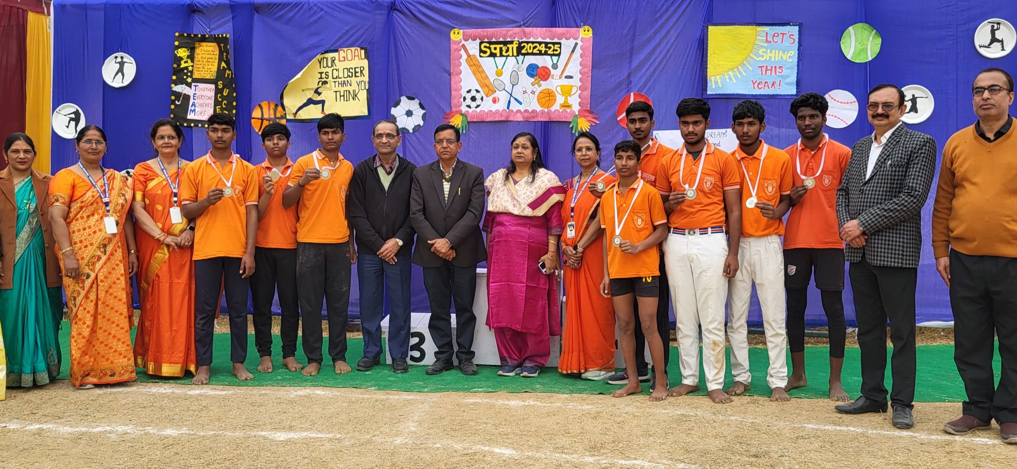 बीजपुर(रामजियावन गुप्ता) सर्वांगीण विकास को ध्यान में रखते हुए डीएवी पब्लिक स्कूल एनटीपीसी रिहंदनगर में आयोजित दो दिवसीय वार्षिक खेल उत्सव ‘स्पर्धा’ का आज समापन किया गया। इस अवसर पर मुख्य अतिथि धन्वंतरि चिकित्सालय एनटीपीसी रिहंदनगर की मुख्य चिकित्साधिकारी डॉ मनीषा कुलश्रेष्ठ एवं अपर महाप्रबंधक टीएसी मुकेश कुमार रहे। प्राचार्य राजकुमार ने वैदिक मंत्रोच्चार के मध्य मुख्य अतिथि द्वय का पुष्पगुच्छ भेंट कर स्वागत किया। मुख्य अतिथि द्वय के समक्ष रस्सा कसी का फाइनल मुकाबला हुआ। दो दिवसीय वार्षिक खेल उत्सव में अरविंद सदन को विजेता तथा श्रद्धानंद सदन को उपविजेता घोषित किया गया। अरविन्द सदन की हाऊस मिस्ट्रेस मीना सिंह अपने सहयोगियों एवं प्रतिभागियों के साथ मुख्य अतिथि द्वय से सिल्ड प्राप्त किया।श्रद्धानंद सदन के हाऊस मास्टर सौरभ कुमार एवं ज्योत्स्ना यादव ने अपने सहयोगियों एवं प्रतिभागियों के साथ उपविजेता का सिल्ड प्राप्त किया।