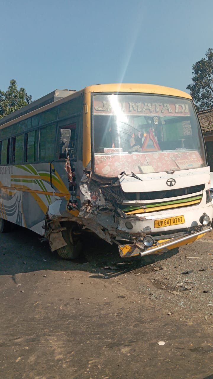 बस और श्रद्धालुओ से भरी कार मे टक्कर से 1 की मौत 4 घायल