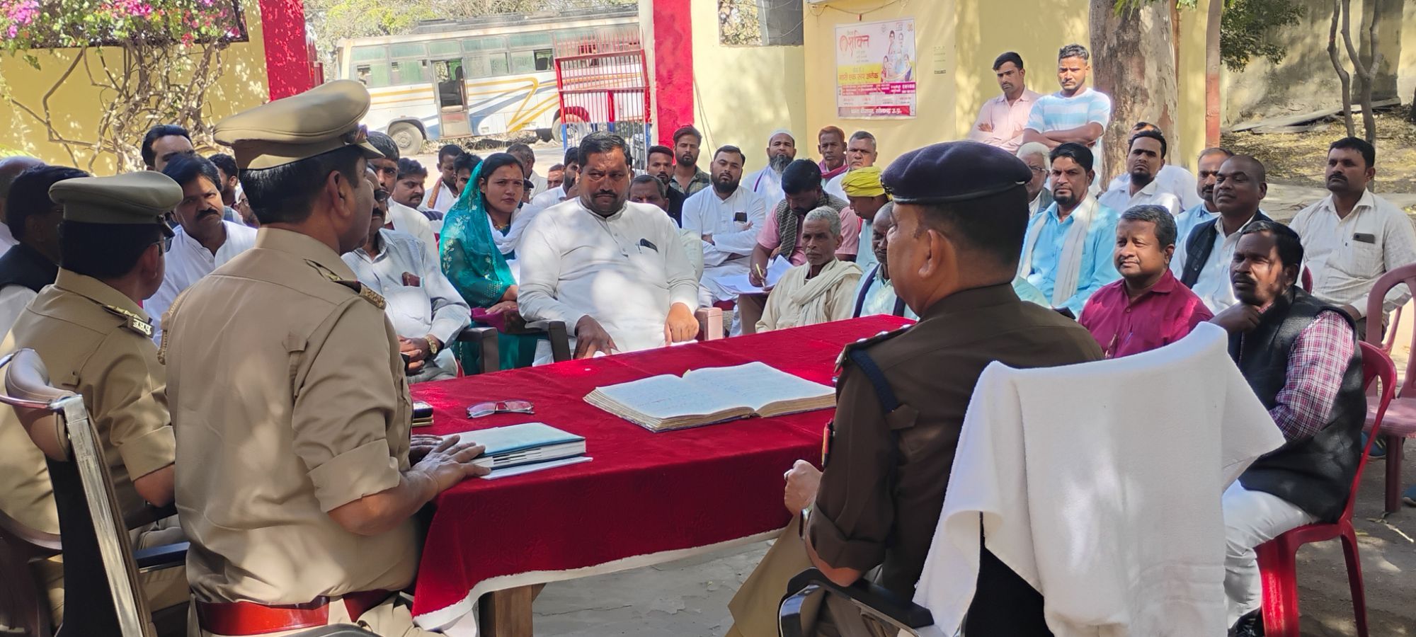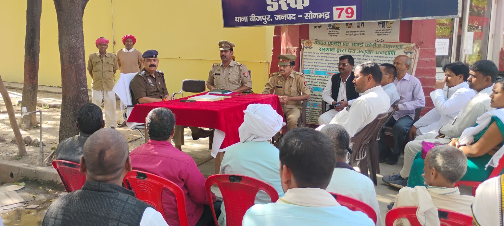 बीजपुर ( रामजियावन गुप्ता)आगामी त्योहार होली के त्यौहार के मद्देनजर बुधवार को बीजपुर थाना प्रांगण में क्षेत्राधिकारी दुद्धि प्रदीप सिंह चंदेल की अध्यक्षता में पीस कमेटी की बैठक सम्पन्न हुयी। बैठक में श्री चंदेल ने उपस्थित संभ्रांतजनो को संबोधित करते हुए कहा कि होली का त्यौहार आपसी भाईचारे के साथ मनाएं और कहा कि शोशल मीडिया या अन्य तरह से अफवाह फैलाने वालों को कतई बख्शा नही जाएगा उनके ऊपर शख्त कार्यवाही की जाएगी। प्रभारी निरीक्षक अखिलेश कुमार मिश्रा ने क्षेत्र में जलने वाली होलिकाओ के बारे में भी विस्तृत जानकारी ली एसओ ने कहा कि त्यौहार के दिन अगर कोई असमाजिक तत्व उत्पात करने की कोशिश करे तो तत्काल पुलिस को सूचना दे।