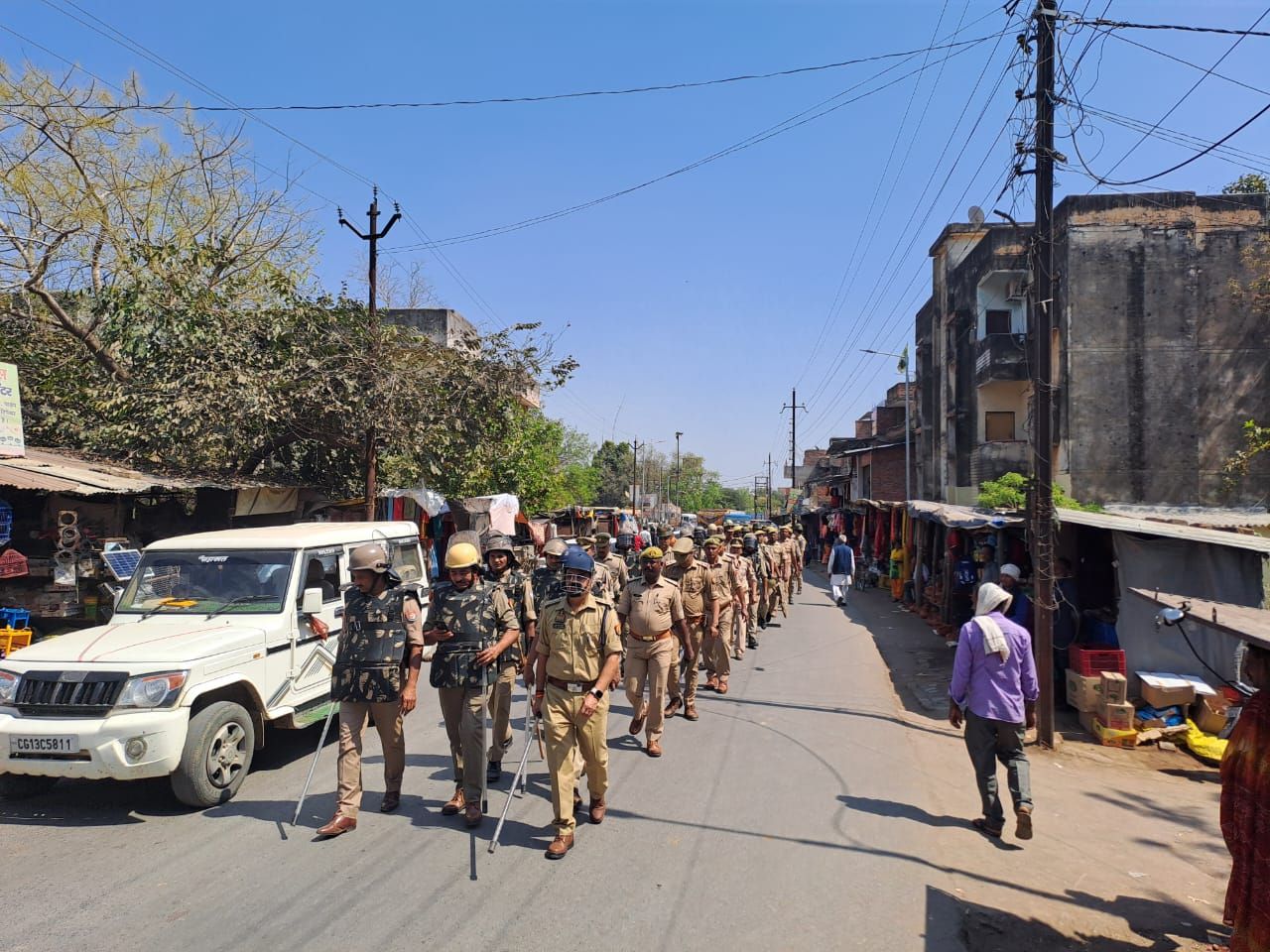 दुद्धी/सोनभद्र होली और रमजान के मद्देनजर प्रदीप सिंह चंदेल ने पीएसी बल के साथ दुद्धी मे निकाला फ्लैग मार्च। पुलिस अधीक्षक अशोक मीणा के निर्देशन मे दुद्धी क्षेत्राधिकारी प्रदीप सिंह चंदेल ने दुद्धी,बभनी,म्योरपुर पुलिस,पीएसी और क्यूआरटी के साथ स्थानीय कस्बे मे फ्लैग मार्च निकाल कर अमन चैन और शांति से आगामी त्योहार मनाने का संदेश दिया।