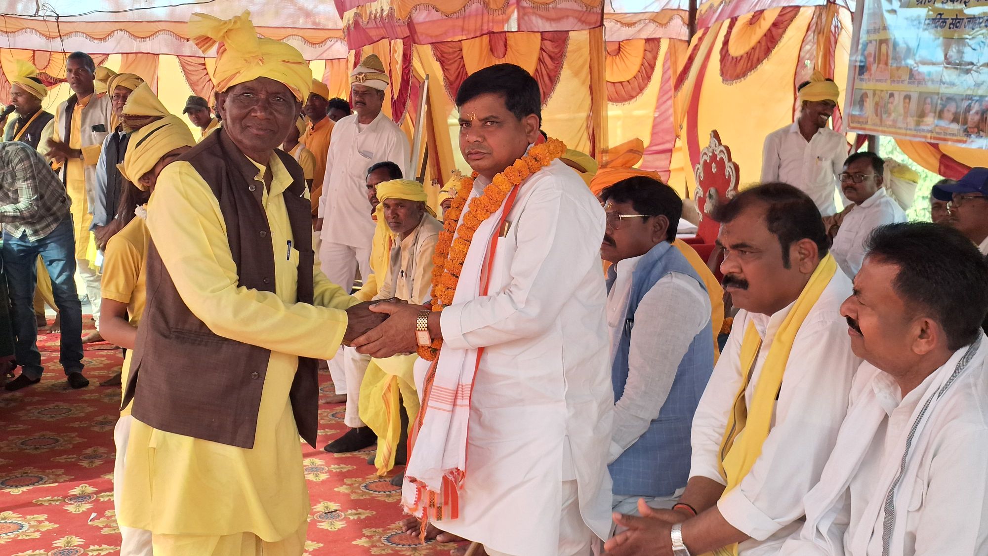 विशिष्ट अतिथि मानसिंह गोंड ने कहा धर्माचार्य द्वारा पूजा अर्चना करने की शुभकामनाएं। आदिवासी समाज जल जंगल जमीन के पुजारी है। आदिवासी समाज के सभी अच्छे कार्यों को प्रसार करने कि जरूरत है।