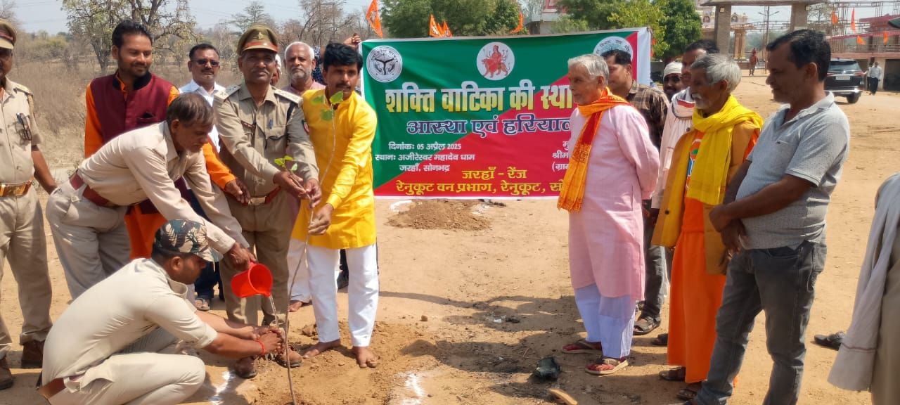 शक्ति वाटिका की स्थापना, अजीरेश्वर धाम में महा अष्टमी पर वन विभाग ने किया पौधरोपण