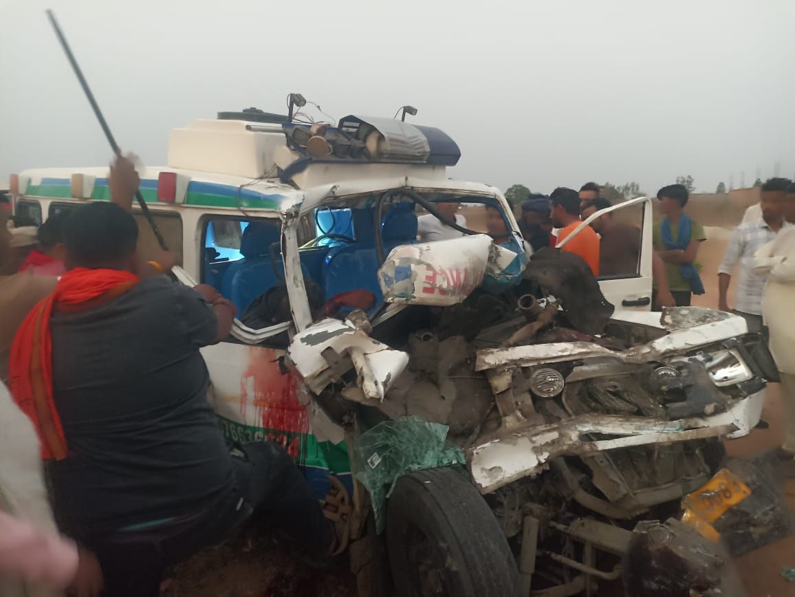 एम्बुलेंस और बस मे हुई आमने सामने भिड़ंत 13 लोग घायल