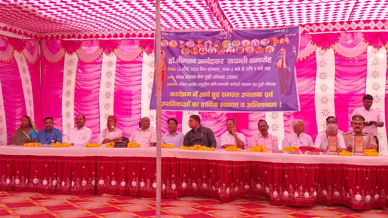 दुद्धी/सोनभद्र (मदन मोहन तिवारी) संविधान के रचयिता भारतरत्न डा भीम राव अंबेडकर की जयंती दुद्धी में धूमधाम से मनाई गई। अखिल भारतीय अनुसूचित जाति/जनजाति कर्मचारी कल्याण संघ दुद्धी द्वारा ब्लॉक संसाधन केंद्र दुद्धी में बीआरडी पीजी कालेज के असिस्टेंट प्रोफेसर डॉ अजय कुमार की अध्यक्षता में कार्यक्रम सम्पन्न हुई। कार्यक्रम को संबोधित करते हुए मुख्य अतिथि डॉ उमेश चन्द्र गोंड़ सेवानिवृत्त अधिशासी अभियंता भारत संचार निगम ने कहा कि डॉ भीमराव अंबेडकर के बताए पदचिन्हों पर चले बीना सच्चे अर्थों में अनुयायी नहीं बना जा सकता। विशिष्ट अतिथि डॉ कृष्ण कुमार कनौजिया सेवानिवृत्त सीएमओ इलाहाबाद, डॉ महेंद्र प्रसाद एसोसिएट प्रोफेसर ओबरा ने कहा भारत रत्न डॉक्टर भीमराव अंबेडकर के शिक्षित हो संगठित बनो सहित बाबा साहब के ज्ञान के प्रकाश से आलोकित अपने मन वचन कर्म को परिमार्जित करने पर विस्तार से प्रकाश डाला। बाबा भीमराव अंबेडकर के जीवन पर बिरहा गायक द्वारा प्रस्तुत किया गया। रमाशंकर भारती पूर्व प्रधान के नेतृत्व में महुअरिया गांव के अम्बेडकर पार्क से बाइक जुलूस निकाली गई। बाइक जुलूस लीलासी होते हुए दुद्धी बीआरसी दुद्धी पहुँचा। इस अवसर पर नीरज कुमार कनौजिया, राजेश कनौजिया, देवमुरत बौद्ध, अमरनाथ, विनोद कुमार, अशोक, नाहनकू राम, चरकु राम मौजूद रहे। वहीँ कस्बा के वार्ड नं 3 व 4 में डॉ भीम राव अम्बेडकर के प्रतिमा पर पुष्पांजली अर्पित कर कार्यक्रम संपन्न हुआ। कार्यक्रम में चेयरमैन कमलेश मोहन, कोतवाल मनोज कुमार सिंह, दिलीप पांडेय, राकेश आजाद, आनंद अग्रहरि, निरंजन गुप्ता, मनोज कुमार ने डॉ आंबेडकर के विचारों पर प्रकाश डाला।