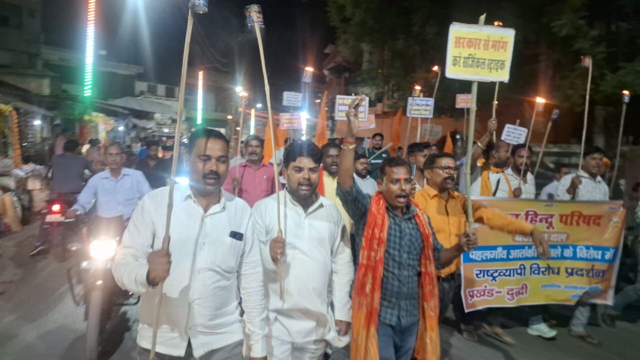 विश्व हिंदू परिषद के कार्यकर्ताओं ने निकाला मशाल जुलुस