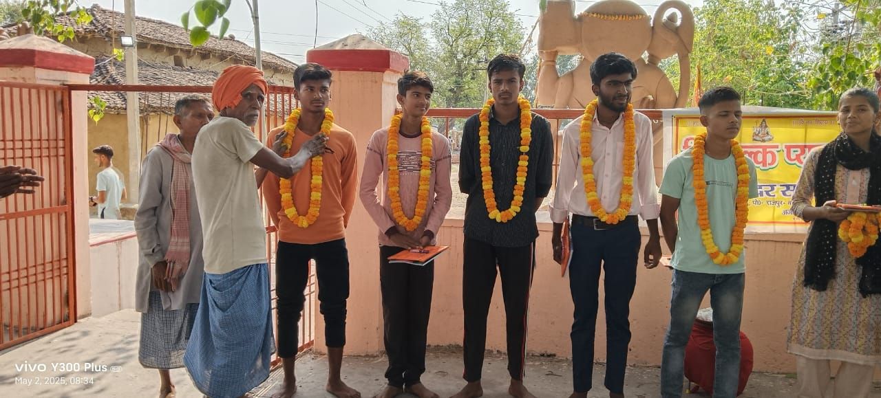 वैनी/सोनभद्र (राजन गुप्ता) सदर ब्लाक के मडरा गांव में शिव मन्दिर प्रांगण में हाई स्कूल व इंटर में ग्राम पंचायत सेंधुरी राजस्व गांव मड़रा के छात्रो ने प्रथम स्थान लाकर अपने ग्राम पंचायत के साथ साथ अपने जिला का नाम रोशन किया है। उनका सम्मान समारोह , निःशुल्क प्याऊ व शिव मंदिर में लगाये गये ,मा राकेश कुमार मिश्रा जी द्वारा पंखा का उद्घाटन शिव मंदिर संरक्षण समिति द्वारा आयोजित किया गया।अरमान अली पुत्र श्रीमती मैरूनिशा एवं श्री अंसारुल अली जो इंटर में प्रथम स्थान व मैथ में 100 में 100 अंक लाएं हुए हैं, उनका सम्मान प्रभारी प्रधानाध्यापक प्राथमिक विद्यालय मडरा सहवेज आलम जी द्वारा पुष्प हार पहना कर और सभी सम्मानित नागरिकों द्वारा करतल ध्वनि से किया गया।आशीष कुमार मिश्र सुपुत्र श्रीमती संजू देवी एवं श्री परमेश्वर मिश्र इंटर में प्रथम स्थान ,संदीप कुमार प्रजापति सुपुत्र श्रीमती सोनी प्रजापति एवं श्री सुनील प्रजापति इंटर में प्रथम स्थान, सनी देवल पुत्र श्री दिनेश कुमार भारती इंटर में द्वितीय स्थान, हाई स्कूल में सत्यम मौर्य सुपुत्र श्रीमती दुर्गावती देवी एवं श्री राजकुमार मौर्य प्रथम स्थान, पुष्पा भारती सुपुत्री श्रीमती किस्मती देवी एवं श्री दिनेश कुमार प्रथम स्थान, आशु सुपुत्री श्रीमती इंद्रावती देवी एवं श्री गया प्रसाद प्रथम स्थान, विमलेश सोनकर सुपुत्र श्रीमती गुलरावती देवी एवं बहादुर सोनकर द्वितीय स्थान सभी का समिति द्वारा पुष्प हार पहनाकर व पुरस्कार देकर सम्मानित किया गया।उक्त अवसर पर शिवम दास संरक्षण समिति के पदाधिकारी संत पति मिश्रा एवं सभी पदाधिकारी ने सभी मेधावी छात्रों का हौंसला लअफजाई किया और उनके उज्जवल भविष्य की कामना की उन्होंने कहा कि यह बहुत बड़े गर्व की बात है कि हमारे ग्राम पंचायत में इतने होनहार छात्र हैं, उन्होंने कहा कि इस तरह के कार्यक्रम से इन छात्रों का मनोबल बढ़ेगा और आने वाली पीढ़ी भी इस सम्मान से जरूर प्रभावित होंगे और वह भी मेहनत करेंगे और जनपद में ही नहीं प्रदेश में अपना स्थान प्राप्त कर जनपद सोनभद्र का नाम रोशन करेंगे।