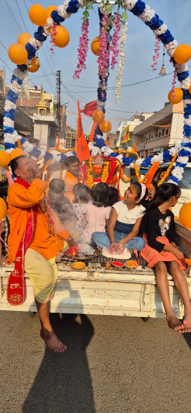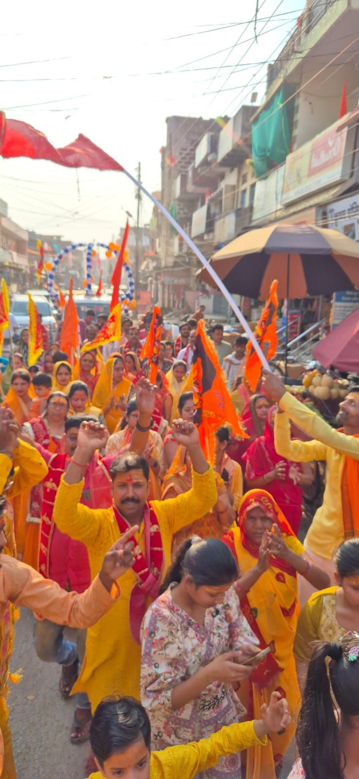 रामसरोवर संकटमोचन हनुमान जी की प्राणप्रतिष्ठा पर नगर में निकाली गई शोभायात्रा
