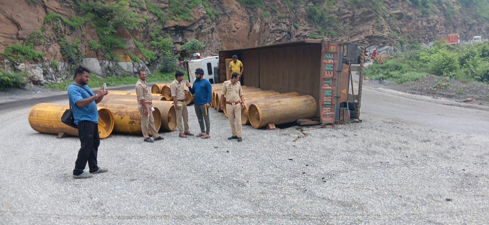 क्लोरिन गैस लदा टेलर अनियंत्रित होकर मारकुंडी घाटी मे पलटा।