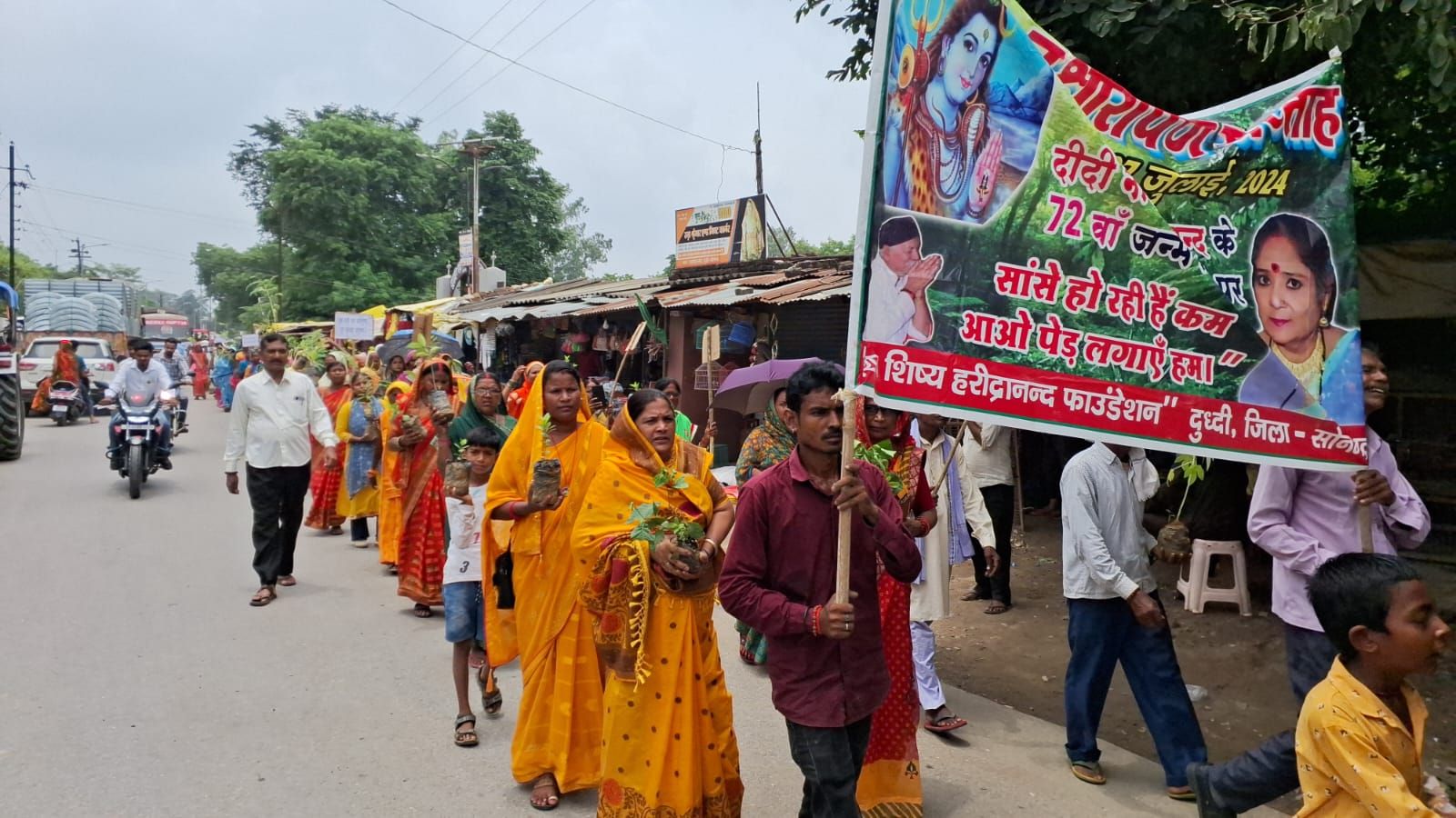 शिवशिष्य परिवार लोगों को जुलूस के माध्यम से कम से कम एक पौधा लगाने का आग्रह किया। लोगों ने सन्देश देते हुए कहा कि “सांसे हो रही हैं कम’ आओ वृक्ष लगाए” धरती माता करे पुकार वृक्ष लगाकर करो श्रृंगार”। इस अवसर पर चेयरमैन कमलेश मोहन, भोला, सुर्यनारायण, विकास, शिवकुमार, आशा, बसंती, सुषमा, ममता, अमरनाथ, मनोरमा, अनिल मौजूद रहे।