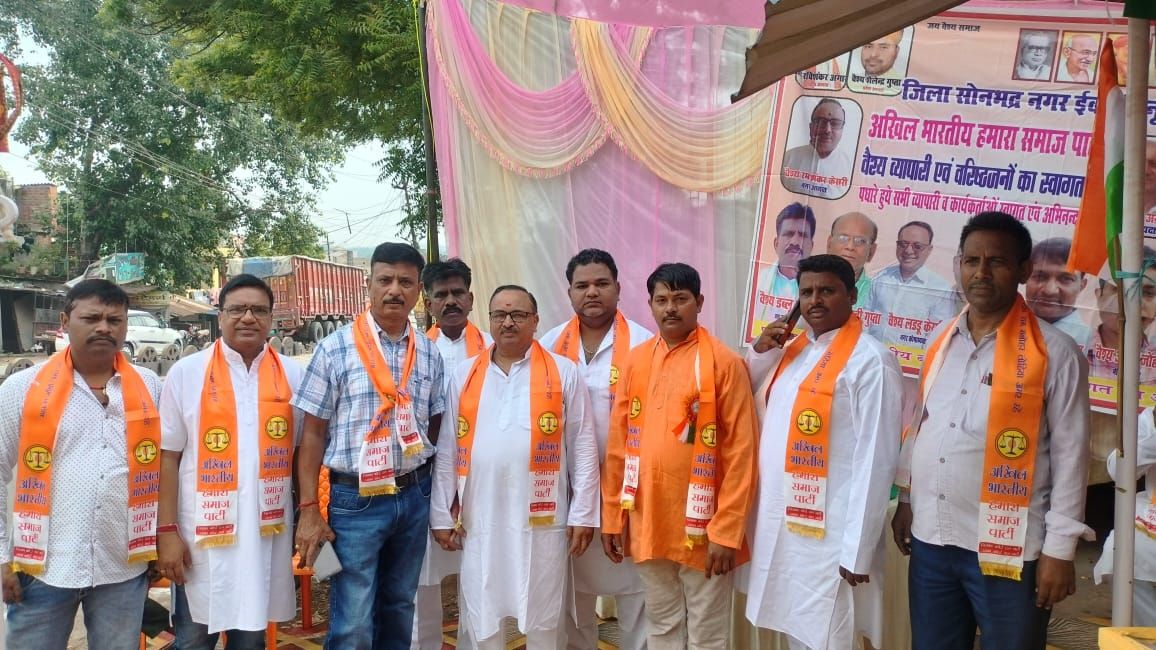 रेणुकूट/सोनभद्र (रामकुमार गुप्ता) शिवापार्क वार्ड 5 के वार्ड सदस्य सोनू शाह के कर कमलों द्वारा अखिल भारतीय हमारा समाज पार्टी के तत्वधान में स्वतंत्रस्वतंत्रता दिवस के पावन अवसर पर पार्टी के जिलाध्यक्ष विनोद अग्रवाल तथा नगर अध्यक्ष रमाशंकर केशरी के द्वारा पार्टी कार्यालय पर राष्ट्रीय ध्वज के द्वारा पार्टी कार्यकर्ता पर राष्ट्रीय ध्वज बड़े ही हर्षोल्लास के साथ फहराया गया। जिलाध्यक्ष श्री अग्रवाल एवं नगर अध्यक्ष रमाशंकर केशरी द्वारा स्वतंत्रता दिवस पर प्रकाश डालते हुए तिरंगे की आन बान शान की रक्षा व देश की एकता अखंडता को बनाए रखने के लिए संकल्प लिया गया। समारोह में अनुज अग्रवाल, विजय गुप्ता, बबलू प्रसाद गुप्ता,दिनेश गुप्ता, विष्णु गुप्ता,प्रभात मोहन गुप्ता, आदि लोगों ने विचार व्यक्त किया पत्रकार अजय जौहरी, मनी शंकर सिन्हा,मस्तराम मिश्रा,शिव नरेश,से हो नूर हसन रामकुमार गुप्ता अशोक सिंह गोविंद गुप्ता ने भाग लिया कार्यक्रम को सफल बनाने में सभासद सोनू शाह ने अहम भूमिका निभाई मिष्ठान वितरण के बाद कार्यक्रम को समापन किया गया।