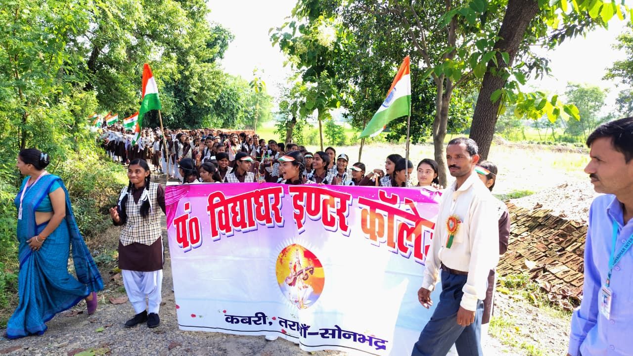 सोनभद्र स्वतंत्रता दिवस के उपलक्ष में पंडित विद्याधर इंटर कालेज एवं परमहंस पब्लिक स्कूल कबरी में छात्र-छात्राओं के द्वारा सांस्कृतिक कार्यक्रम प्रस्तुत किया गया। छात्र छात्राओं ने अत्यंत हर्षोल्लास के साथ प्रभातफेरी निकाली, जिसमें सुन्दर स्वतंत्रता गीत के साथ देश को आजाद कराने वाले उन वीर सपूतों का जयघोष करके उन्हें याद किया, जिन्होंने देश की आजादी के लिए अपना तन- मन- धन सब कुछ देश के नाम कर दिया। ध्वजा रोहण के उपरांत सरस्वती- वंदना के साथ सांस्कृतिक कार्यक्रम आयोजित किया गया, जिसमें छात्र छात्राओं ने एक से बढ़कर एक कार्यक्रम प्रस्तुत किए। देशभक्ति से ओतप्रोत गीतों ने लोगों के मन में देशभक्ति भावना को भर दिया।इसी क्रम में श्री कृष्ण जन्माष्टमी के उपलक्ष्य में छोटे- छोटे बच्चे और बच्चियों ने श्री कृष्ण,राधा, गोपियों तथा ग्वालों की सुन्दर झांकी प्रस्तुत कर सभी के मन को मोह लिया। कार्यक्रम को संबोधित करते हुए विद्यालय के संरक्षक श्री सुरेश तिवारी ने कहा कि “हमें वीर सपूतों की गाथाओं से प्रेरणा लेकर आगे भी अपने देश को सुरक्षित, समृद्ध, गौरवशाली एवं विकसित राष्ट्र बनाने के लिए वचनबद्ध होना है।”सभी कार्यक्रम सराहनीय एवं प्रसंनीय रहे । इस अवसर पर विद्यालय के प्रधानाचार्य श्री ओमप्रकाश चतुर्वेदी, श्री श्रवण कुमार पाण्डेय, श्री अनुराग त्रिपाठी ,सगीर खान ,राजू प्रसाद ,कृष्ण देव, चंद्रभान ,अमिताभ बच्चन, संदीप, पूजा पाण्डेय, पूजा सिंह ,आरती, पूजा भारती, श्वेता सिंह, निधि सिंह, पायल सोनी,आदि अध्यापक अध्यापिकाएं उपस्थित रही।